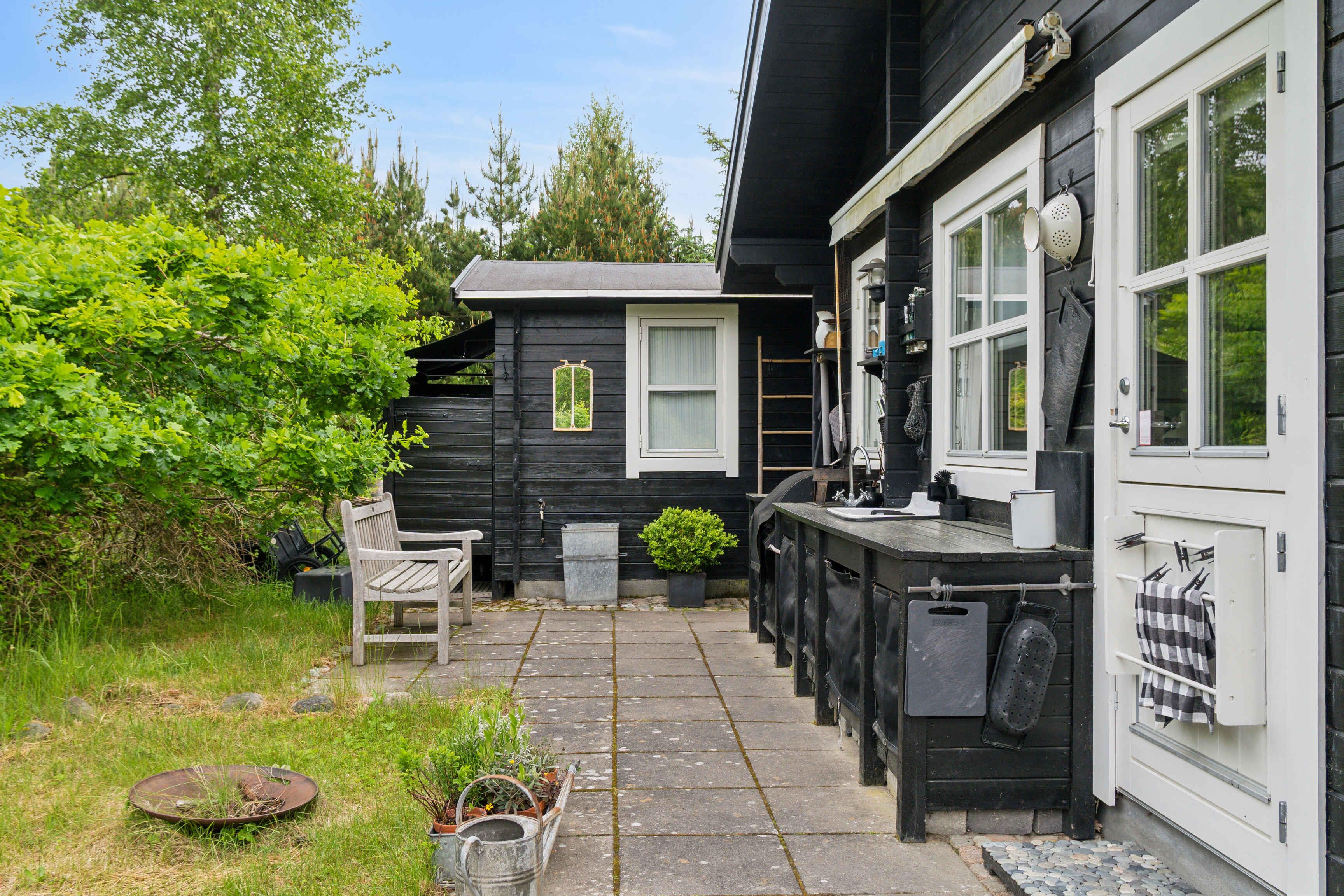 Charmantes, gut gepflegtes Ferienhaus, nur 300 m von einem privaten Strand entfernt. Am Strand gibt es Gartenmöbel, sodass man den Strand wie seinen eigenen Garten nutzen kann. Es gibt einen Steg am Strand, ideal für Kinder. Das Wasser ist flach und sehr ruhig, da der Strand am Anfang des Isefjords liegt. Das Ferienhaus, gebaut im Jahr 2005, ist im typischen Sommerhausstil eingerichtet, mit gemütlichen persönlichen Dingen, die eine echte Sommerhausatmosphäre schaffen. Es gibt ein sehr großes Küchen-Esszimmer mit einem Holzofen und allen notwendigen Küchenutensilien. Vom Wohnzimmer aus gelangt man auf eine fantastische überdachte Terrasse, wo man die Abendsonne und das wunderschöne Naturgrundstück mit Heidekraut und Kiefern genießen kann. Durch die Küchentür gelangt man zu einer genialen Außenküche mit Gasherd, Grill und warmem und kaltem Wasser. Hier bereitet man im Sommer alle Mahlzeiten zu. Es gibt ein schönes Elternschlafzimmer mit Zugang zu einer kleinen überdachten Morgen-Terrasse. Es gibt außerdem 2 kleinere Schlafzimmer, eines mit Doppelbett, das andere mit Einzelbett. Zusätzlich gibt es ein charmantes Gästehaus mit einem Doppelbett und einem kleinen Hochbett für ein Kind. Es gibt ein großes Badezimmer mit Badewanne und ein herrliches Außendusche in Verbindung mit der Außenküche. Es gibt Kinderfahrräder und 3 Erwachsenenfahrräder. Achtung: Wird nicht für gewerbliche Nutzung vermietet.