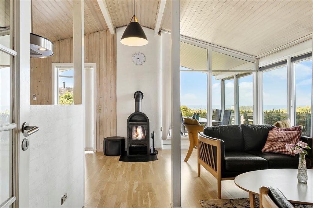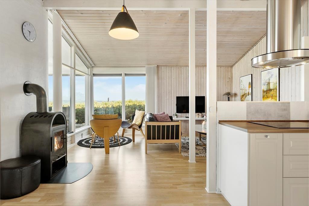 Die offene Küche liegt in Verbindung mit dem Wohnzimmer, aus dem das bietet einen einzigartigen Blick auf den Fjord, ist ausgestattet mit Glaskeramikherd, Dunstabzugshaube und Kühlschrank mit Gefrierfach. Flur mit Geschirrspüler, Mikrowelle und Waschmaschine. Hell und modern eingerichtes Wohnzimmer mit großen Fensterpartie, die nicht nur gutes Licht ins Haus bringt, sondern auch die Möglichkeit gibt, die tolle Aussicht zu genießen. Von Wohnzimmer ist Ausgang zur eine teilweise überdachte Terrasse, gutem Essplatz, Gemütliche Sitzecke mit sofas, Sesseln, Holzofen und Flachbildschirm. Badezimmer mit Duschnische, Badewanne und Fußbodenheizung. Gästetoilette mit Waschbecken. 3 Schlafzimmer, zwei mit Doppelbetten und eins mit Großen Etagenbett (90x200). Heizung des Hauses erfolgt durch Wärmepumpe, Holzofen und elektrische Heizung.