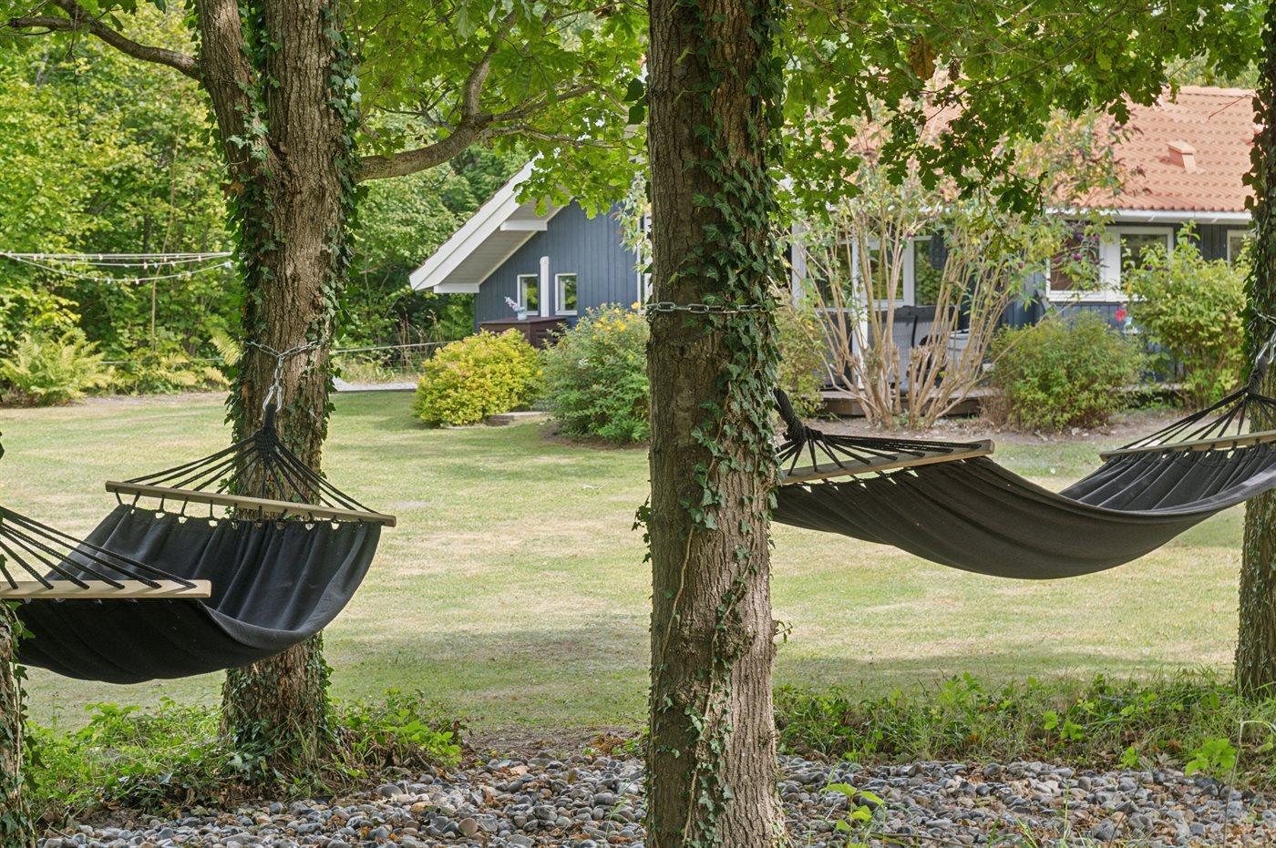Die Ferienunterkunft liegt auf einem 1277 m² großen Gartengrundstück. Die Entfernung zum Meer beträgt 175 m. Es gibt einen Badesteg in der Nähe. Die nächste Einkaufsmöglichkeit liegt 5600 m entfernt. In einem Abstand von 5600 m gibt es einen Golfplatz. Es steht ein 18 m² Terrassenareal zur Verfügung. Außerdem gibt es 8 m² überdachte Terrasse. Schaukel. Es steht ein Grill zur Verfügung. Parkplatz auf dem Grundstück.
