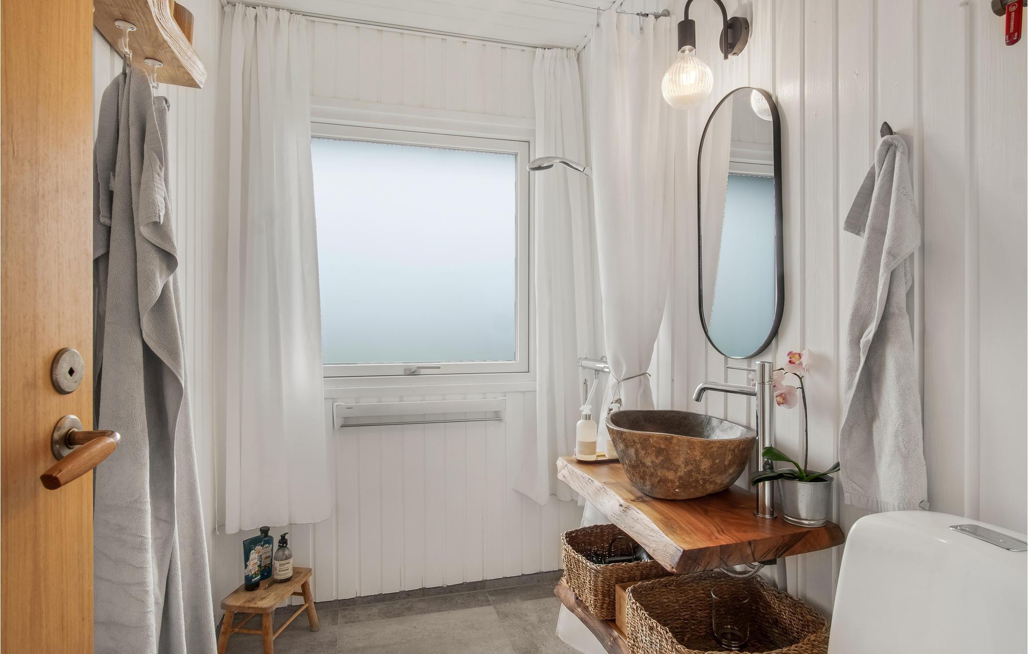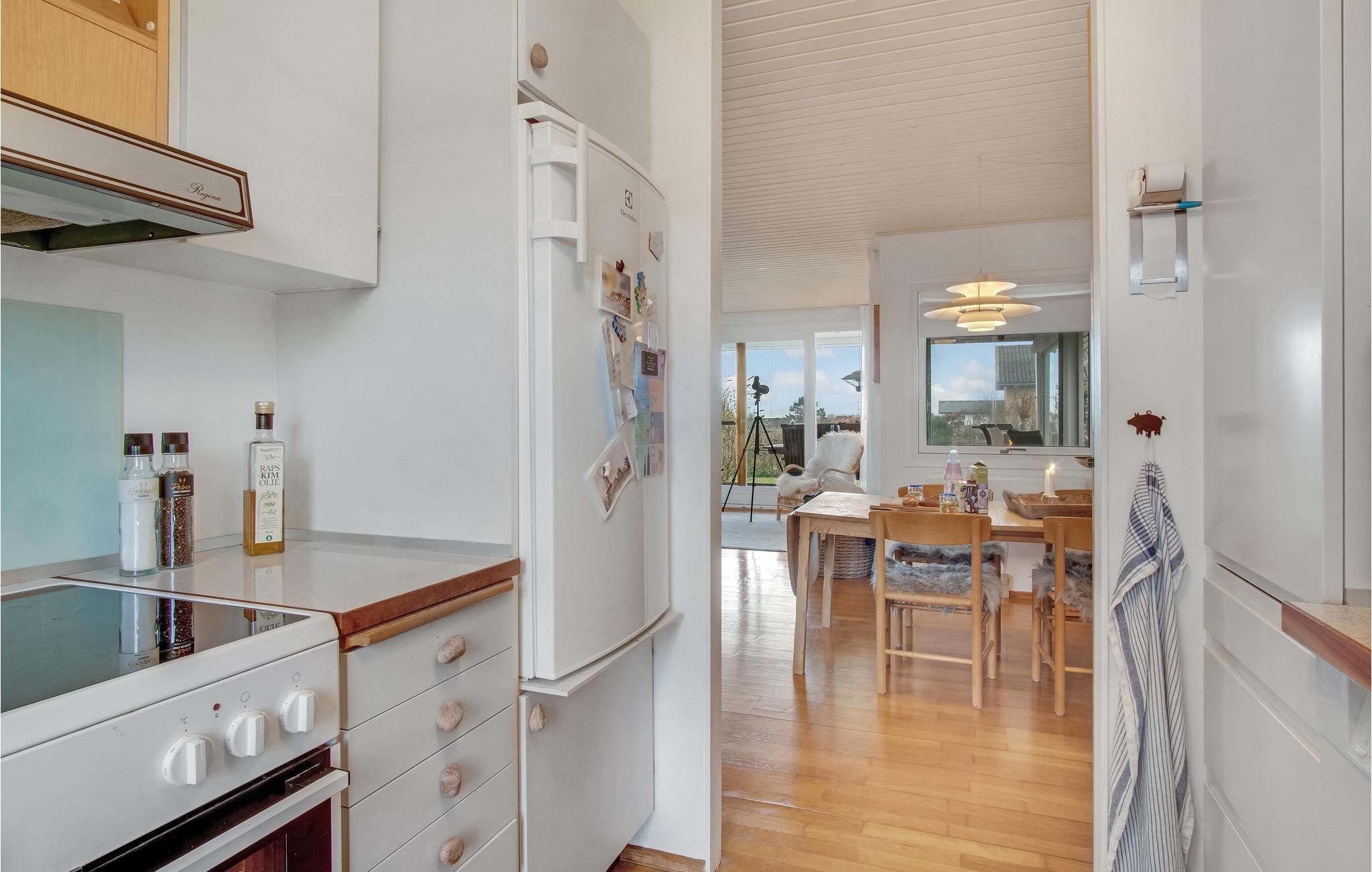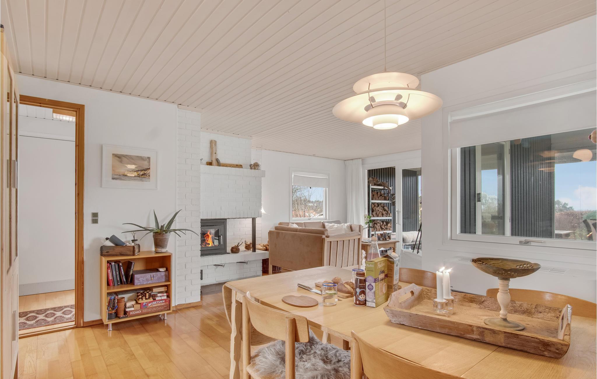 Willkommen in diesem charmanten und hellen Ferienhaus. Kommen Sie an und fühlen sie sich mit Ihrer Familie wie zuhause. Das gemütliche Haus ist ein Traum von Weiß und Holz und bietet Ihnen mit einem Kamin, die heimelige Atmosphäre, die Sie zum Ausruhen vom Alltag brauchen. Legen Sie die Beine auf das Sofa, spielen Karten und beobachten Vögel und das Treiben in der Bucht mit dem Fernglas.