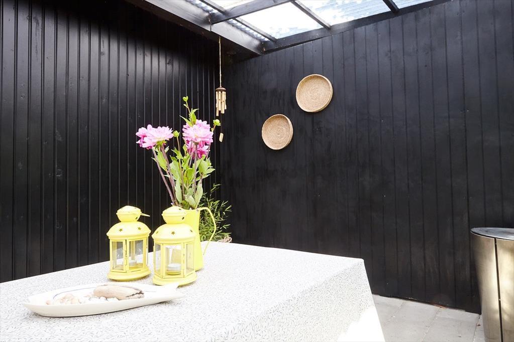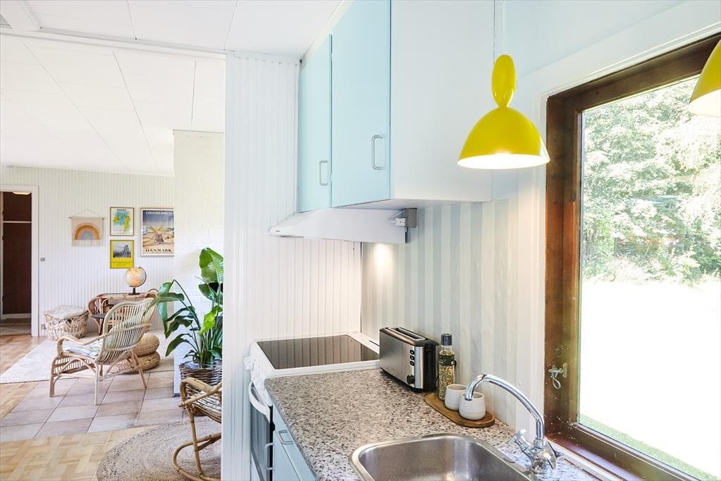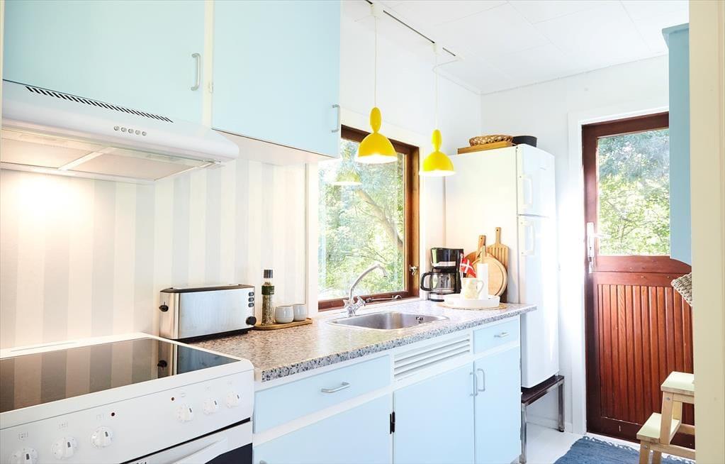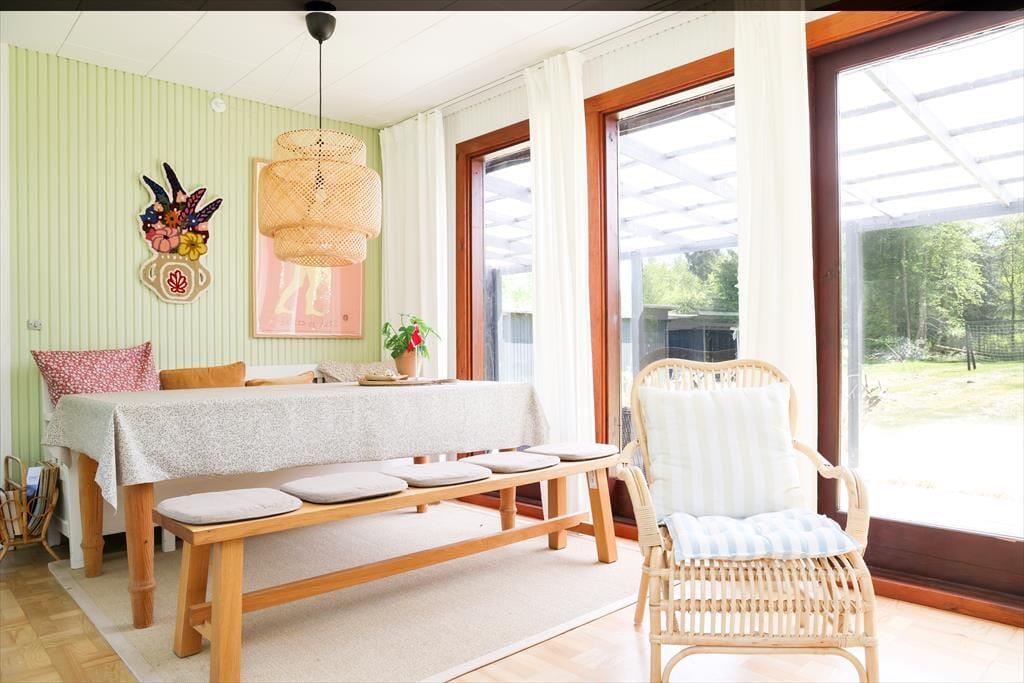 Das Ferienhaus beinhaltet eine offene Küche. Der helle Wohnraum präsentiert sich in Form eines kombinierten, stimmungsvollen Wohn- und Essbereichs, in dem Sie gemeinsam spielen und in Ruhe lesen können. Das Badezimmer mit Dusche und die beiden schönen Schlafräume bestechen mit "Badehotel"-Atmosphäre. Vom Wohnraum aus gelangen Sie auf eine schön überdachte Terrasse, auf der Sie herrliche Stunden im Freien verleben. Das große Grundstück eignet sich zum Ballspielen und Umhertollen. Ihr Hund ist in diesem Ferienhaus herzlich willkommen.