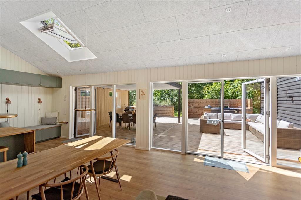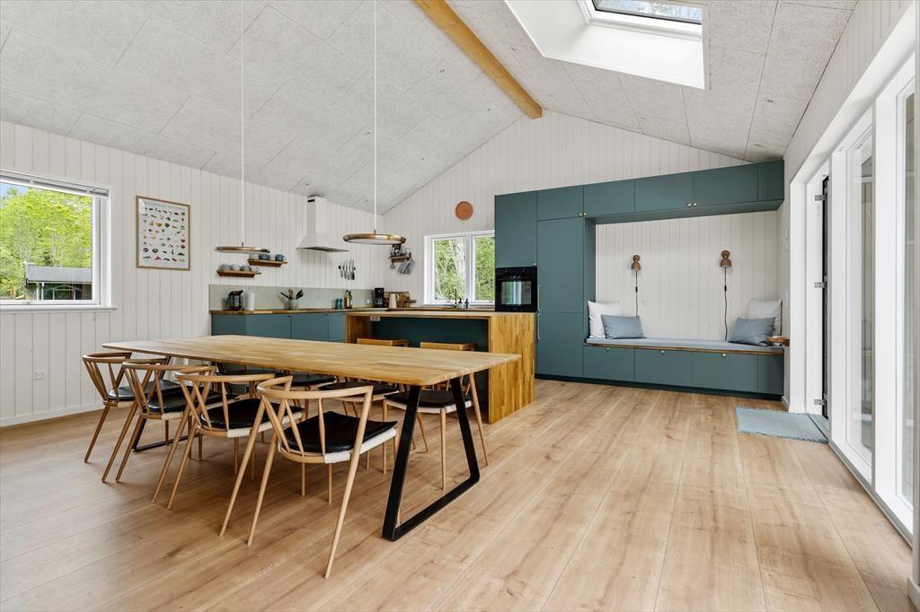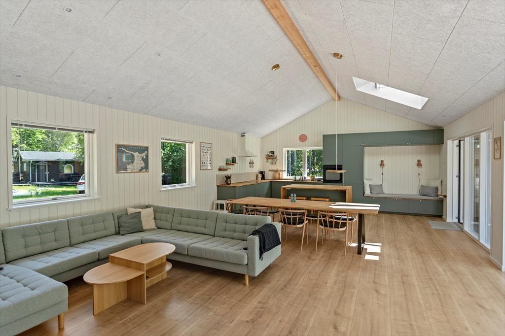 Das wunderbar helle und überaus einladende Ferienhaus begrüßt dich mit einem modernen, skandinavisch geprägten Einrichtungsstil. Große Fenster verleihen insbesondere dem Küchen-, Wohn- und Essbereich einen reizvollen Tageslichteinfall. Durch eine Terrassentür gelangst du hinauf auf deine fantastische Holzterrasse. Der offen gestaltete Aufenthaltsraum ist das Herzstück deines Mietobjektes. In diesem Teil des Hauses genießt du mit deinen Lieben Mahlzeiten und lange Spieleabende sowie zahllose erholsame und gemütliche Stunden in der Polstersitzecke. In der attraktiven Küche wird die Zubereitung des Essens zum vergnügten Familienprojekt. Dank des großzügig bemessenen Platzangebotes und zwei schönen Duschbädern, eignet sich dieses tolle Ferienhaus sehr gut für den gemeinsamen Urlaub zweier befreundeter Familien.