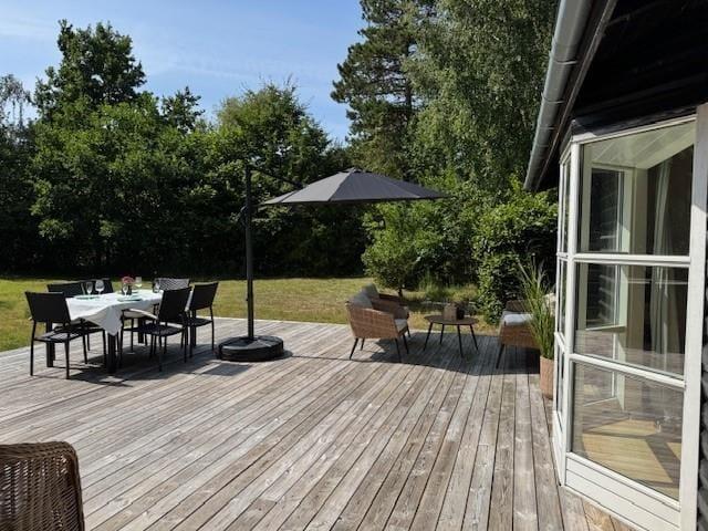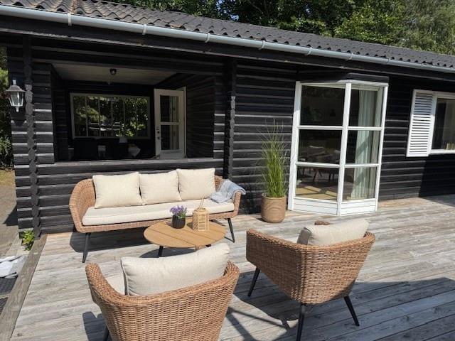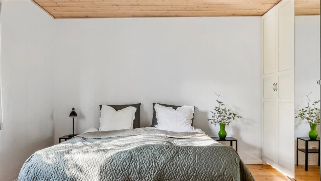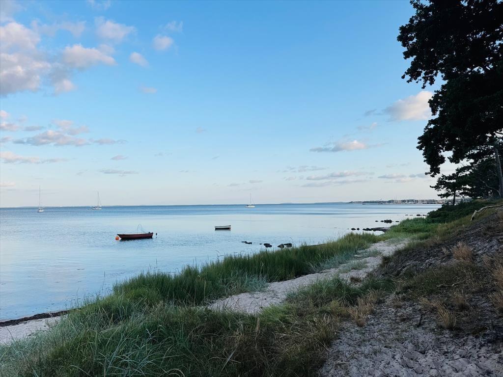 Das Ferienhaus ist schön gelegen auf einem 1.528M2 großen und friedvollen Grundstück mit hohen Bäumen, die einen ruhigen, grünen Windschutzzaun um das Gebiet bilden. Vom Garten führt ein privater Pfad direkt zum Meer, und Sie können den Strand zum Fuß innerhalb zwei Minuten (200M) erreichen – ideell für das Baden, Krabben fangen und Wasserspaß.