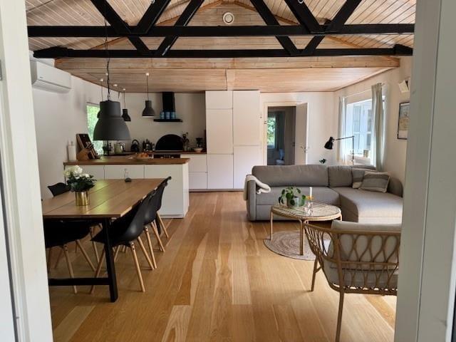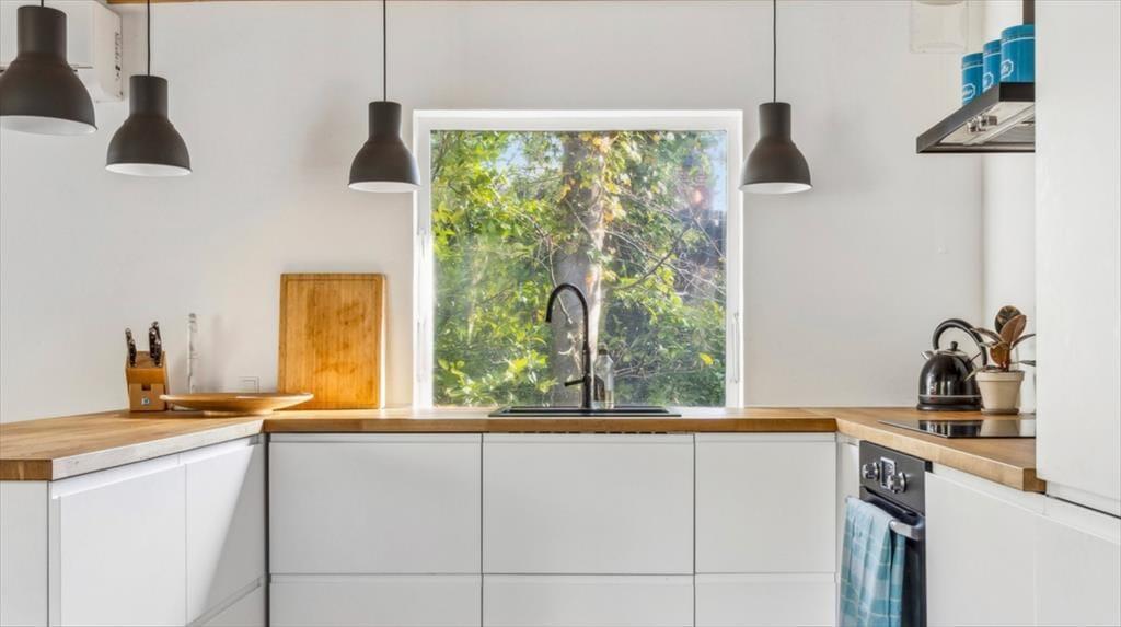 Das Haus wurde 2020 renoviert und steht jetzt mit einem großen, offenen Wohnzimmer mit Decke bis zum First, offener Küche, drei Schlafzimmer, zwei Toiletten und einem Badezimmer sowie einem großen offenen Mehrzweckraum mit schönen freiliegenden Balkens. Der Sammlungspunkt ist das große Wohnzimmer mit einem neuen Holzofen, Erker und doppelten Terrassentüren gegen die Süd/West-Terrasse, die eine warme und einladende Atmosphäre schaffen. Die Küche ist mit modernen Elektrogeräten und großem Tischraum ausgestattet, damit mehrere Leute zusammen kochen können. Perfekter Rahmen für das gemeinsame Kochen und gemütliche Stunden.