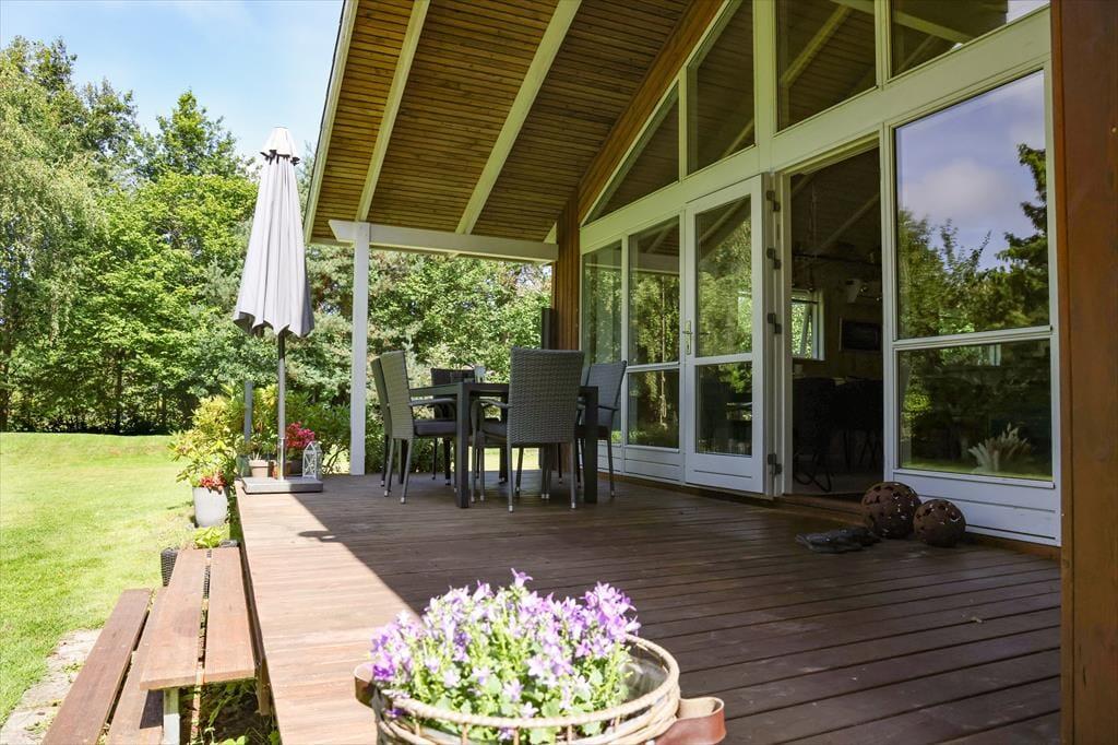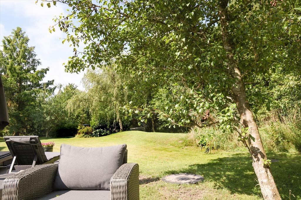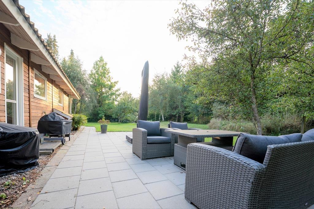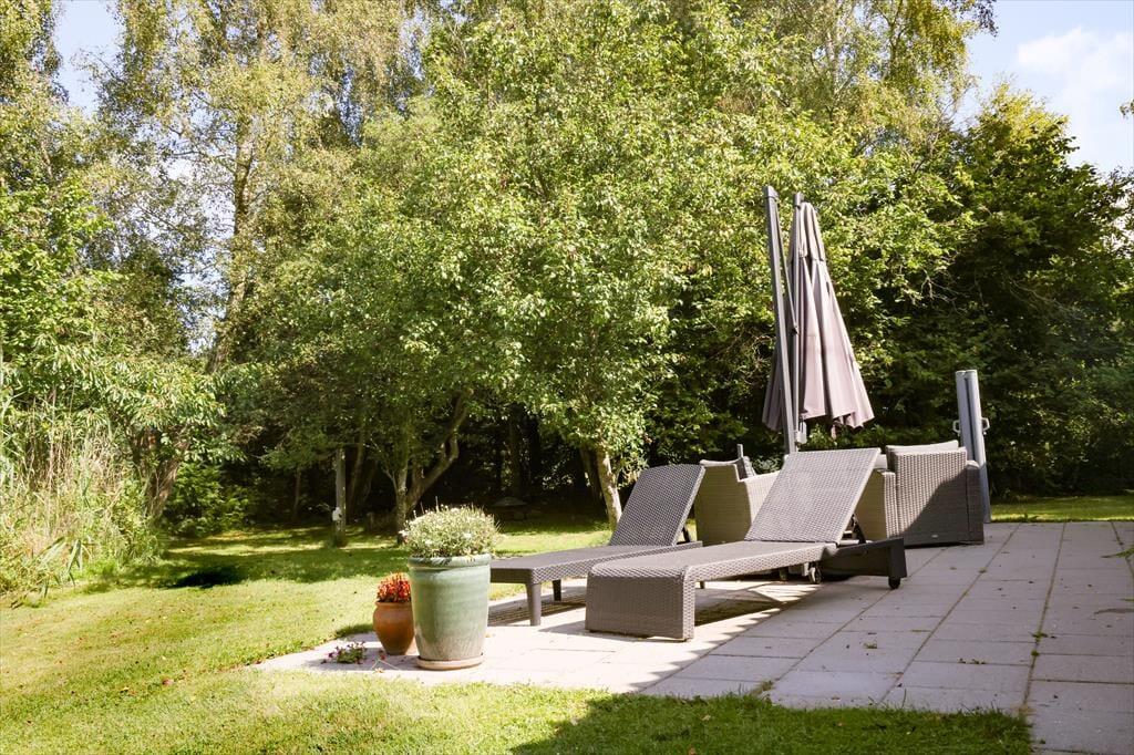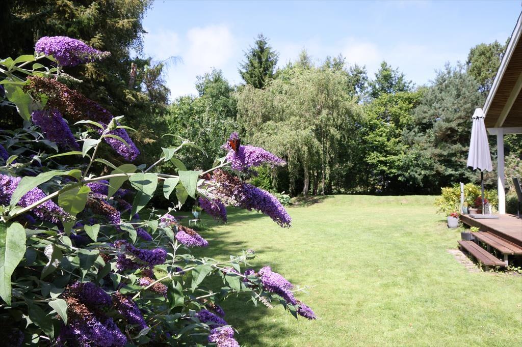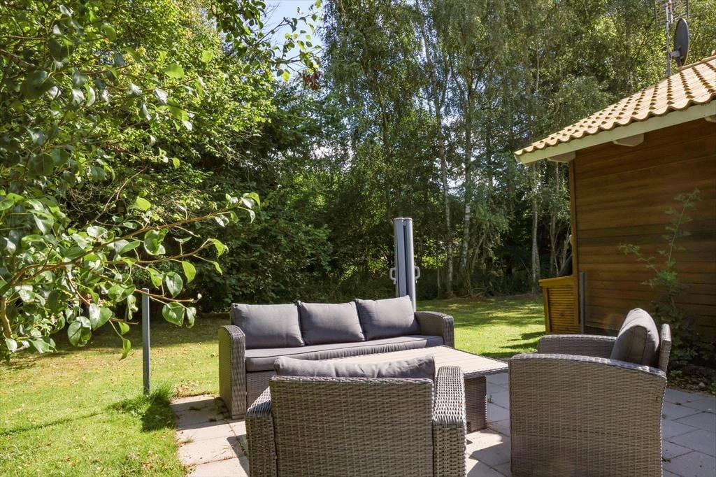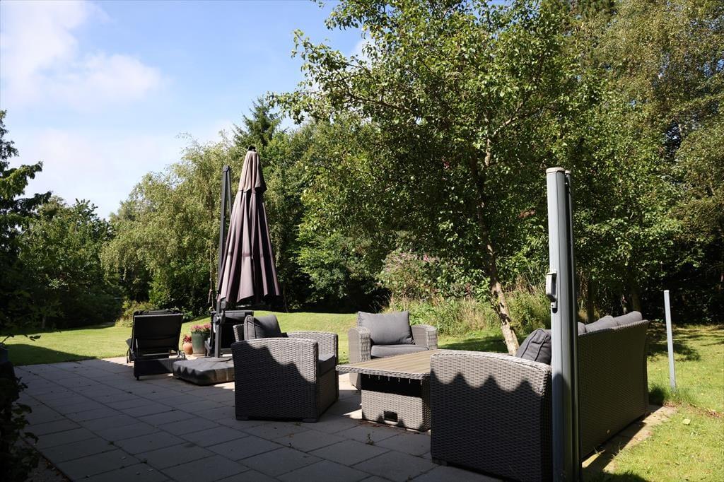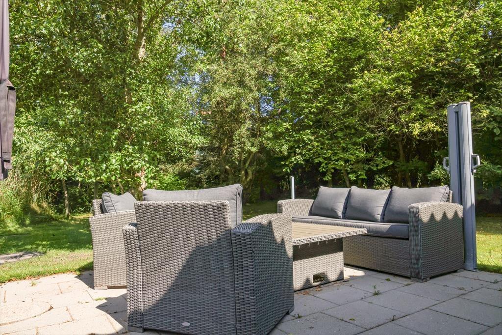 Die große Holzterrasse lädt zu ausgedehnten Sonnenbädern auf der Gartenliege ein. Während du mit einem kühlen Getränk und einem spannenden Buch das schöne Wetter genießt, spielen deine Kindern ausgelassen im Garten. Auf der Terrasse genießt ihr sicherlich viele gemeinsame Mahlzeiten an der frischen Luft - inklusive herrlicher Grillabende im Licht der untergehenden Sonne. Das große Grundstück ist gut abgeschirmt, sodass ihr euch angenehm ungestört und in aller Ruhe frei entfaltet. Lange, erlebnisreiche Urlaubstage könnt ihr wunderbar mit geröstetem Stockbrot und dergleichen in gemütlicher Runde an der Lagerfeuerstelle ausklingen lassen