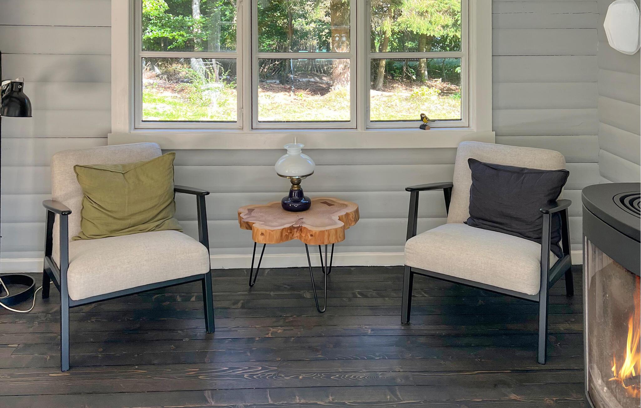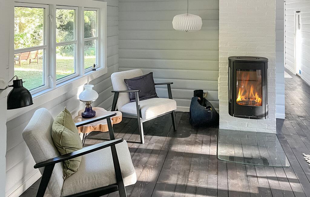 Ihr Ferienhaus begrüßt Sie mit seiner traditionellen Einrichtung und gemütlich eingerichteten Räumen. Der Wohnbereich präsentiert sich freundlich und hell. Machen Sie es sich in der Sofaecke gemütlich – ideal zum Entspannen, Spielen oder Schmökern. Große Fenster lassen viel Licht in das Haus, so kommt das harmonische Holzdesign besonders gut zur Geltung. In der praktisch gestalteten Küche mit viel Arbeitsfläche können Sie gemeinsam kochen. Ihre Mahlzeiten genießen Sie am Esstisch mit Blick in den schönen Garten.