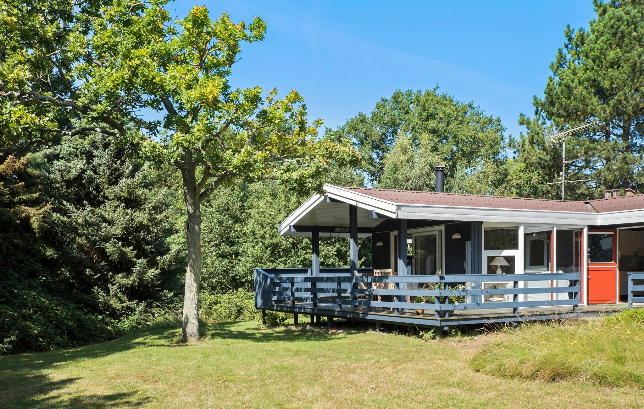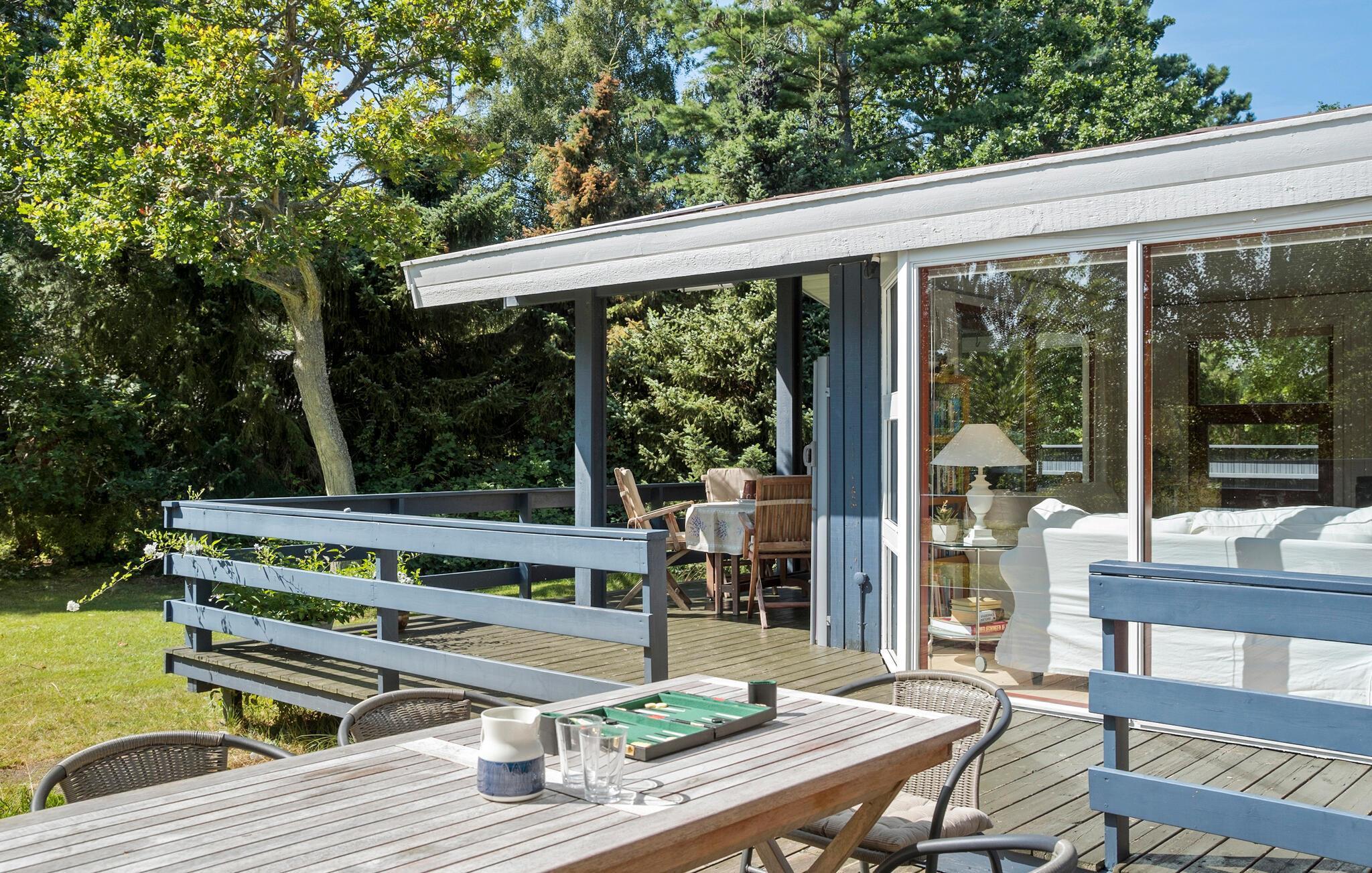 Idyllisches Ferienhaus nahe Skansebugten Strand mit großem Garten und Kaminofen für entspannte Urlaubstage.
