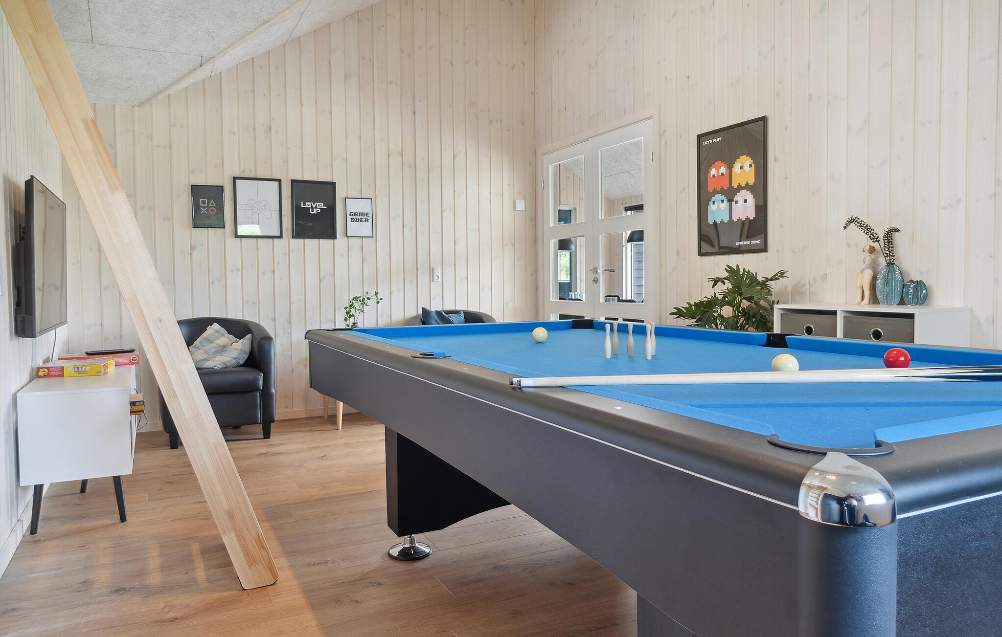 Dieses großzügige Feriendomizil ist wie geschaffen für einen unvergesslichen Urlaub mit Freunden oder der Großfamilie. Fordern Sie sich gegenseitig zu Tischtennis- oder Billardspielen heraus, oder genießen Sie gemütliche Abende vor dem Kamin im eleganten Wohnzimmer mit Meerblick. Lassen Sie den Tag bei einem geselligen Spieleabend ausklingen oder ziehen Sie sich in den hauseigenen Wellnessbereich mit Innenpool und Sauna zurück.