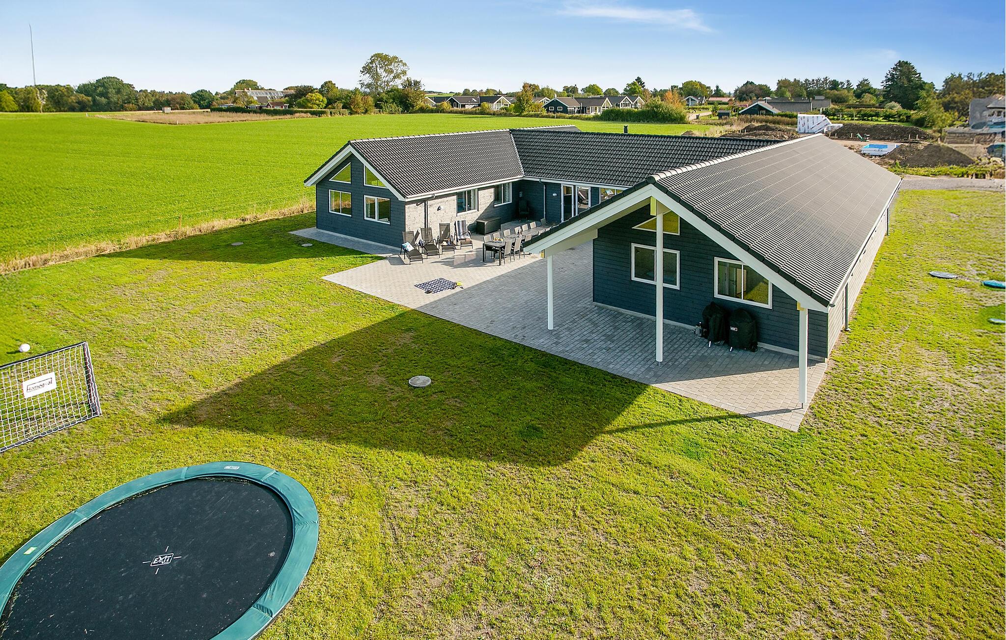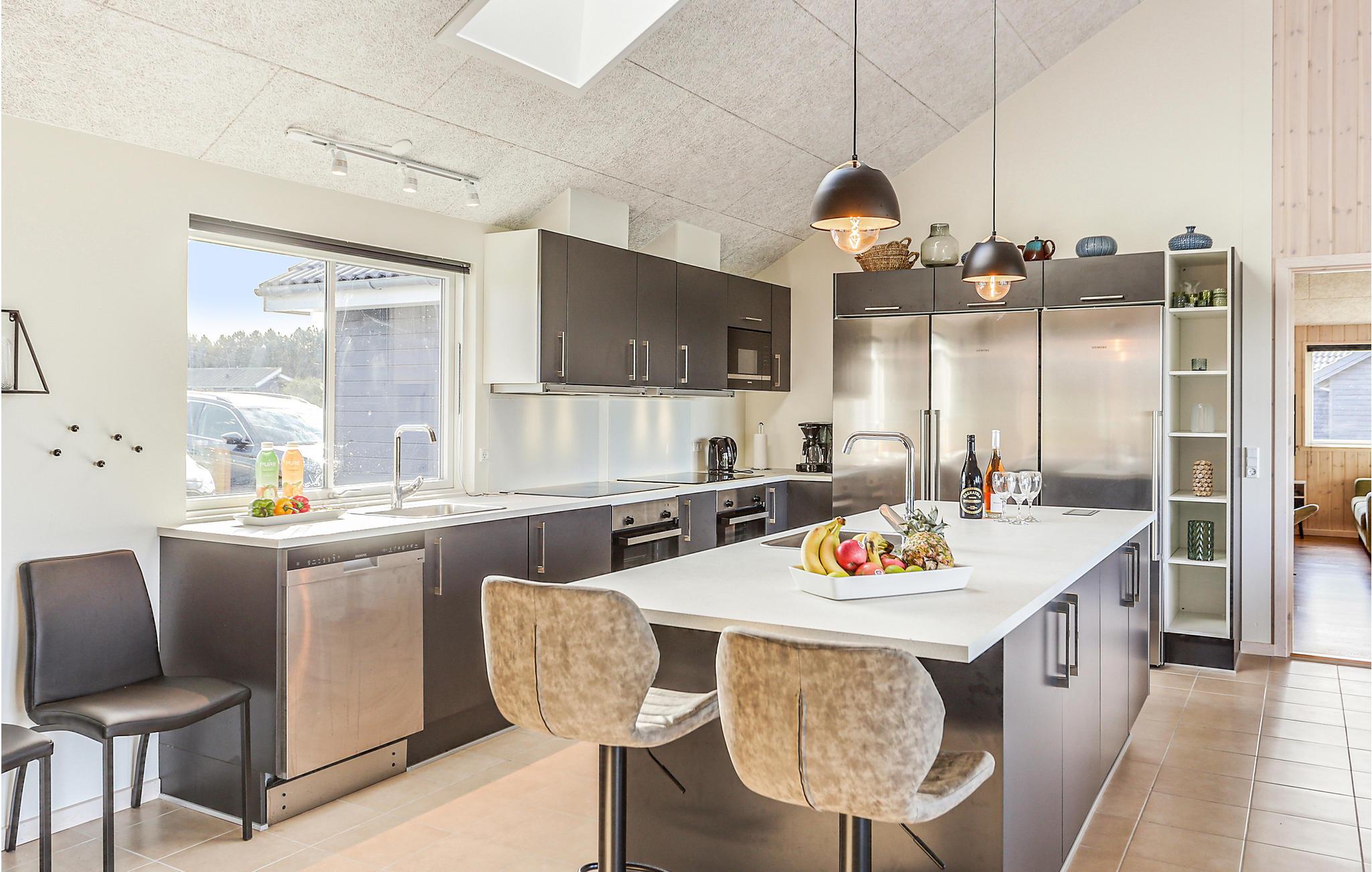 Das Haus ist schön mit modernen Möbeln eingerichtet, sehr geräumig, gut aufgeteilt und um drei separate Schlafbereiche herum gebaut. Jeder Schlafbereich verfügt über ein Badezimmer und ein zusätzliches Bad ist mit dem Poolbereich verbunden. Zusätzlich große und geräumige Schlafböden. Das große Wohnzimmer mit Zugang zur Terrasse ist der natürliche Treffpunkt des Hauses mit einem Schlafsofa, Essbereichen und einer Küche. Die Küche verfügt über eine Kochinsel sowie 2 Geschirrspüler. Auf der großen Terrasse finden Sie bequeme Gartenmöbel und einen Grill. Dies ist der perfekte Rahmen für einen Sommertag in der Sonne genau wie einen schönen Grillabend mit Freunden und Familie.