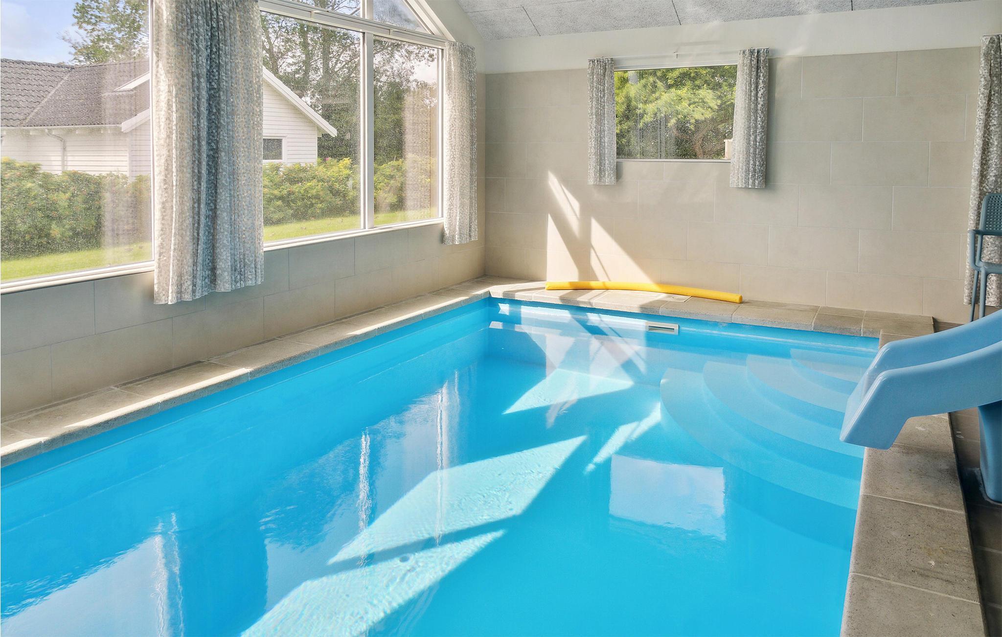 In ruhiger Lage am Råbylille Strand liegt dieses schöne Ferienhaus mit vielen Möglichkeiten für Aktivitäten im Haus und einem schönen Blick über die Landschaft. Schön und gepflegt, dies gilt auch für den Poolbereich, wo Sie schwimmen können, wärend Kinder allen Alters auf der Wasserrutsche spielen. Im großen Whirlpool können Sie so richtig entspannen. Setzen Sie den Urlaub im Aktivitätsraum fort, hier können Sie Billard, Tischtennis und andere Spiele spielen können. Wohn- und Esszimmer sind mit der gut ausgestatteten Küche verbunden, wo Sie leckere Gerichte zubereiten können. Auf den Terrassen können Sie die Sonne genießen, grillen oder den Rasen für alle möglichen Aktivitäten nutzen.