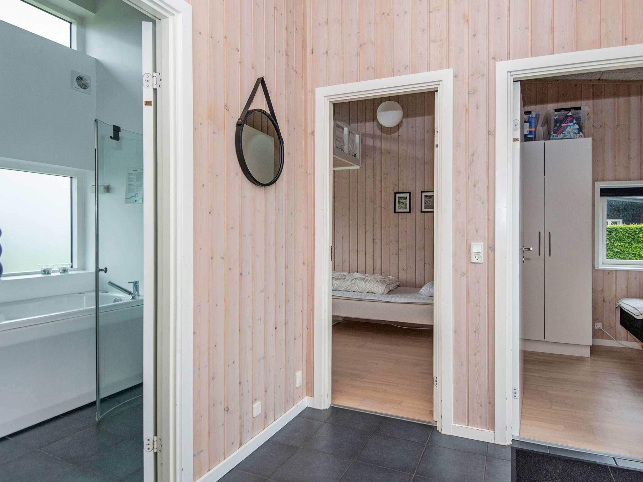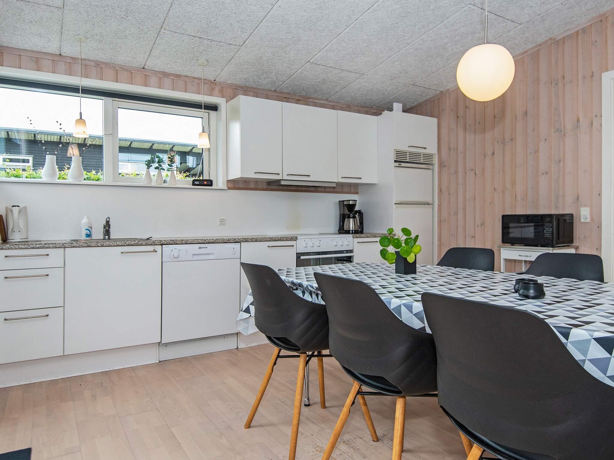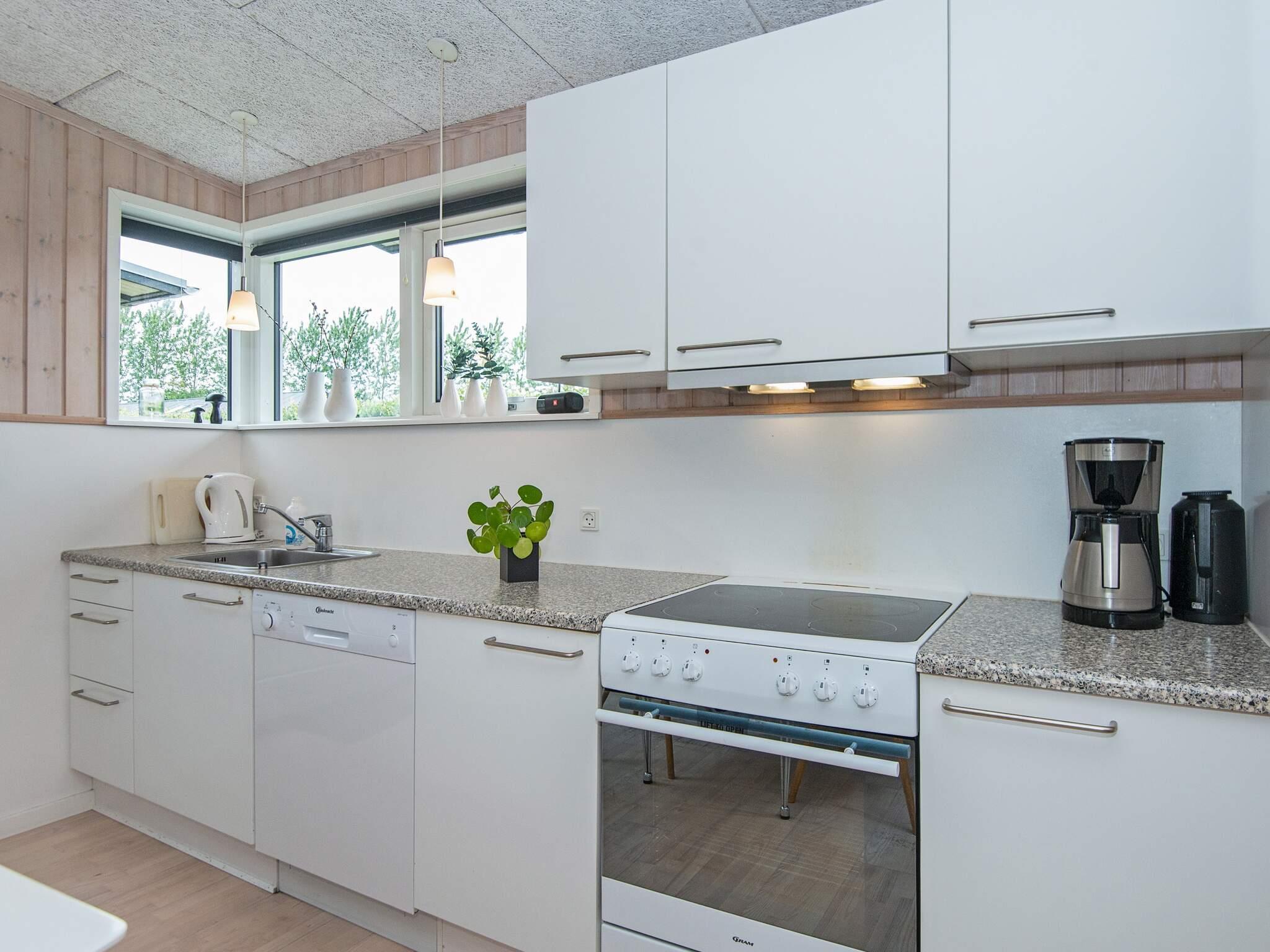 Es bietet drei Schlafzimmer mit jeweils zwei Schlafplätzen in Betten sowie ein großes Badezimmer mit u.a. Whirlpool für erholsame Stunden. Die Einrichtung ist durchgehend stilvoll und hell. Mitten im offenen Küchen-/Wohnbereich für das Familienleben steht ein attraktiver Kaminofen für kühlere Abende. Das Ferienhaus ist zudem mit einer energieeffizienten Wärmepumpe, die das ganze Jahr hindurch für angenehme Innentemperaturen im Haus sorgt, ausgestattet.