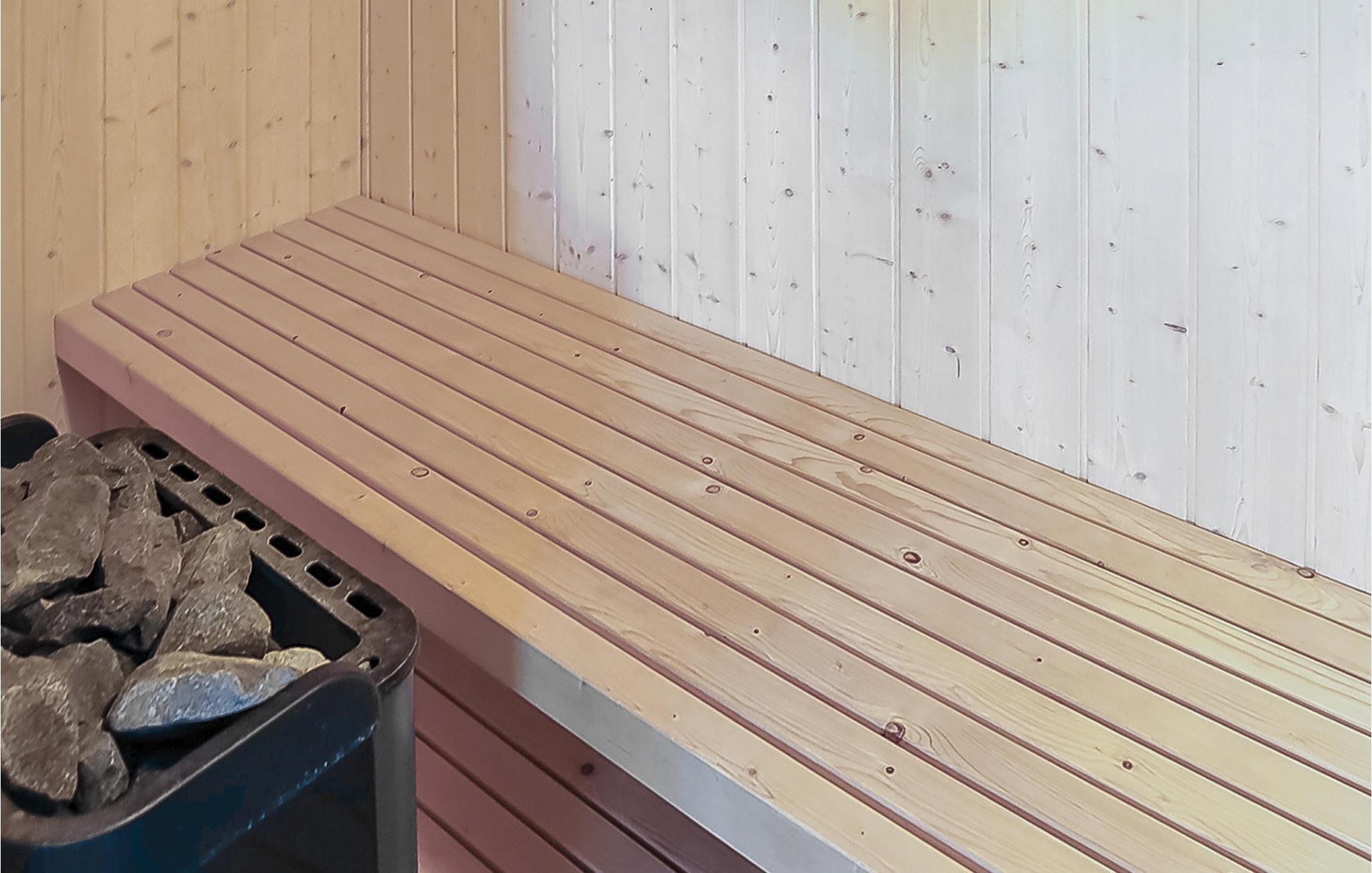 Im Inneren ist das Ferienhaus mit schönen Möbeln sowie einer schönen Küche und einem Bad eingerichtet. Die Umgebung bietet spannende Naturerlebnisse und ist für Familien mit Kindern bestens geeignet. Nicht weit vom Haus entfernt finden Sie einen der schönsten Badestrände der Gegend. An kalten Wintertagen können Sie ein Bad im Whirlpool oder der Sauna genießen. Oder unternehmen Sie einen Spaziergang in der schönen und ruhigen Umgebung. Eine größere Stadt mit Einkaufsmöglichkeiten liegt weniger als eine halbe Autostunde vom Haus entfernt.