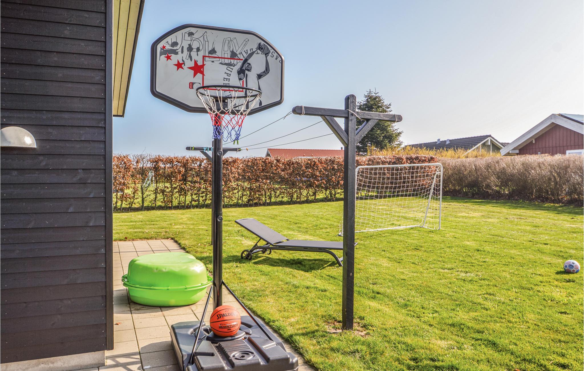 Das Haus liegt auf einem Gartengrundstück mit einem niederen Randbewuchs und Voraussetzungen für eine Partie Crocket, einem Basketballkorb und einem Fußballtor. Gartenmöbel und Sonnenliege sind gleichfalls vorhanden.