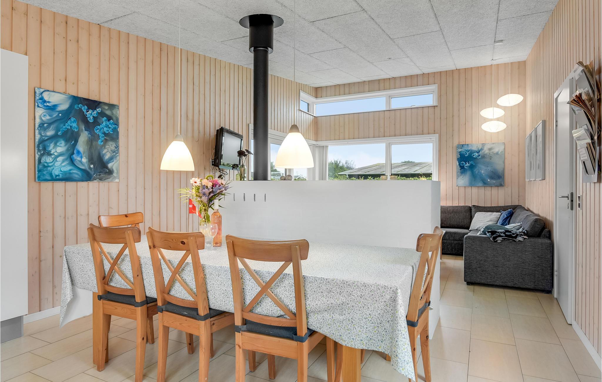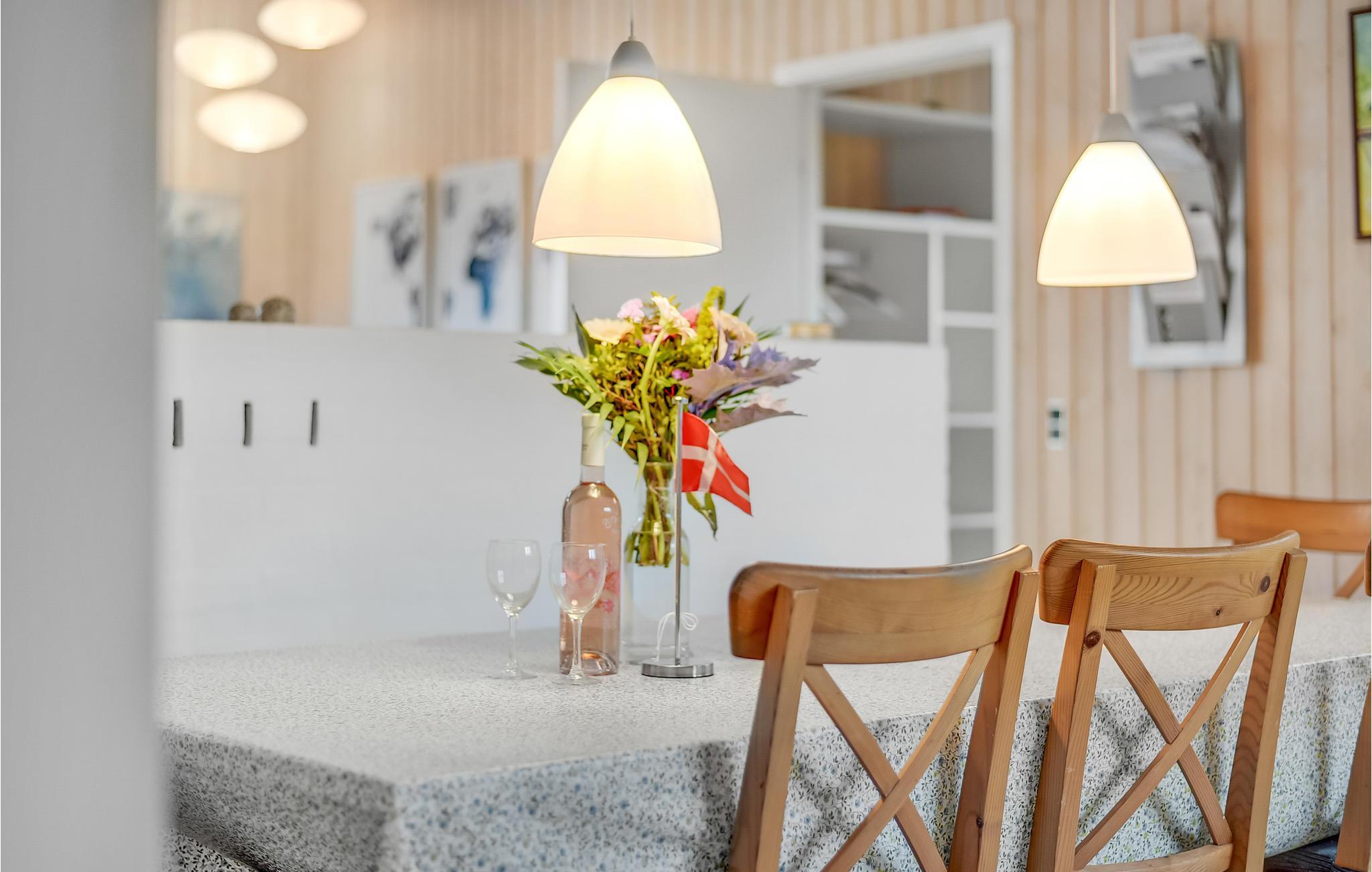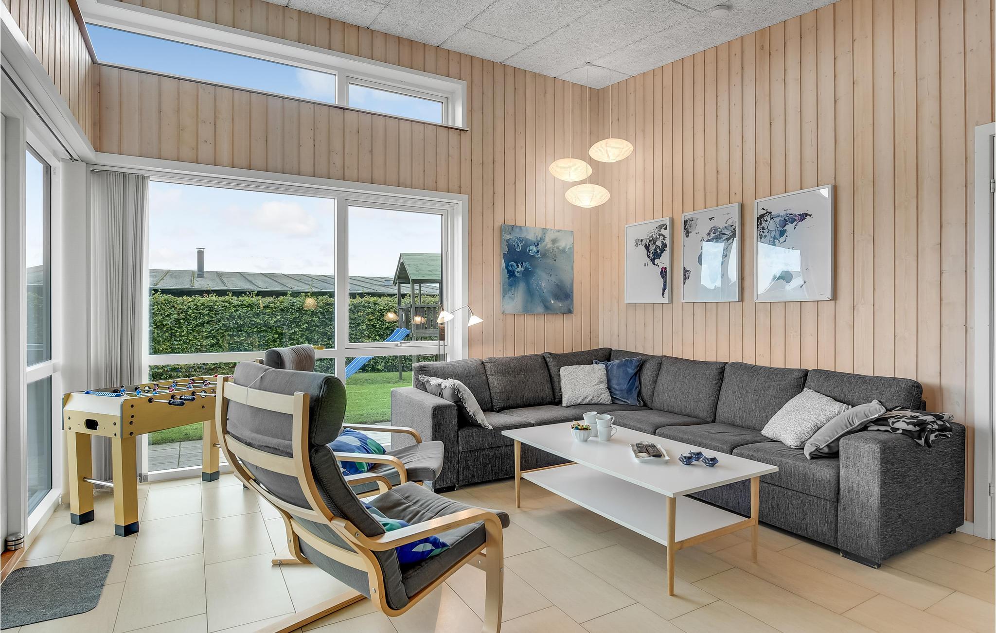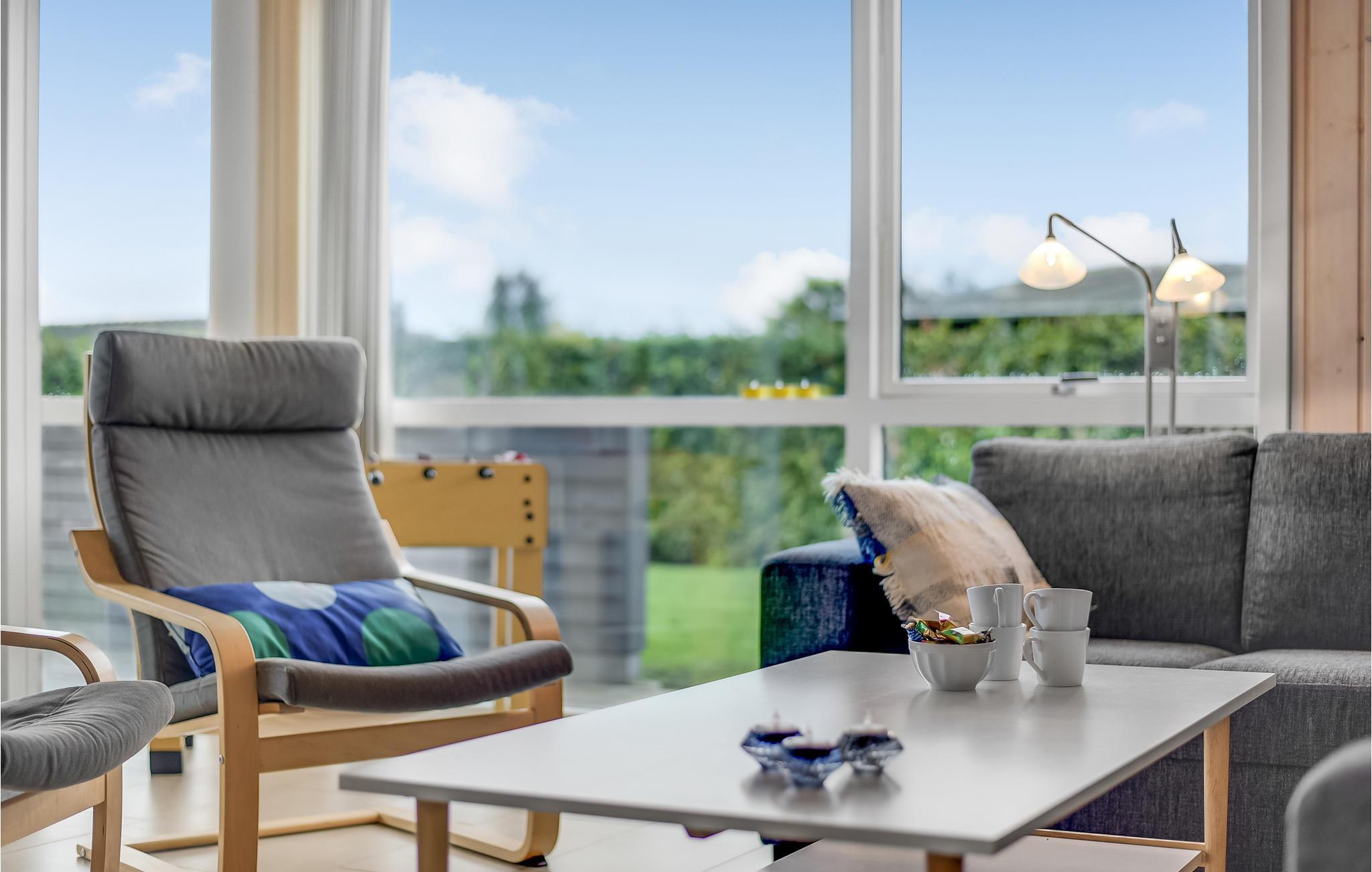 Draußen sind die Terrassen gut vom Wind geschützt, damit Sie auch die langen, skandinavischen Sommerabende in vollen Zügen genießen können. Das Haus ist die ideale Basis, wenn Sie gerne angeln, denn Ihren Fang können Sie vor der Tür reinigen, der Filetierplatz verfügt über einen Wasseranschluss. Auch für die Unterhaltung der Kinder ist gesorgt, im Ferienhaus gibt es Spielsachen für sie. Der Strand ist ebenfalls kinderfreundlich.