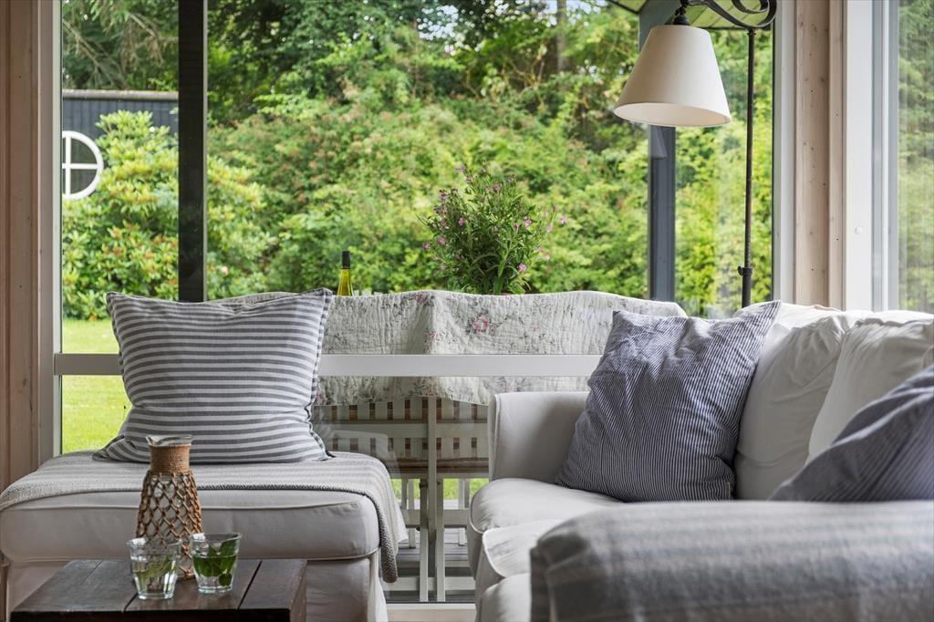 Das Haupthaus verfügt über zwei Schlafzimmer, die für Komfort und einen erholsamen Schlaf sorgen. Ein Schlafzimmer ist mit einem Doppelbett ausgestattet und verfügt über ein Dachfenster, das das Morgenlicht hereinlässt und eine wunderbare Atmosphäre schafft. Das zweite Schlafzimmer verfügt über zwei Einzelbetten. Für diejenigen, die mehr Privatsphäre suchen, bietet der Anbau ein gemütliches Doppelbett, in dem Sie sich zurückziehen und die Ruhe genießen können.