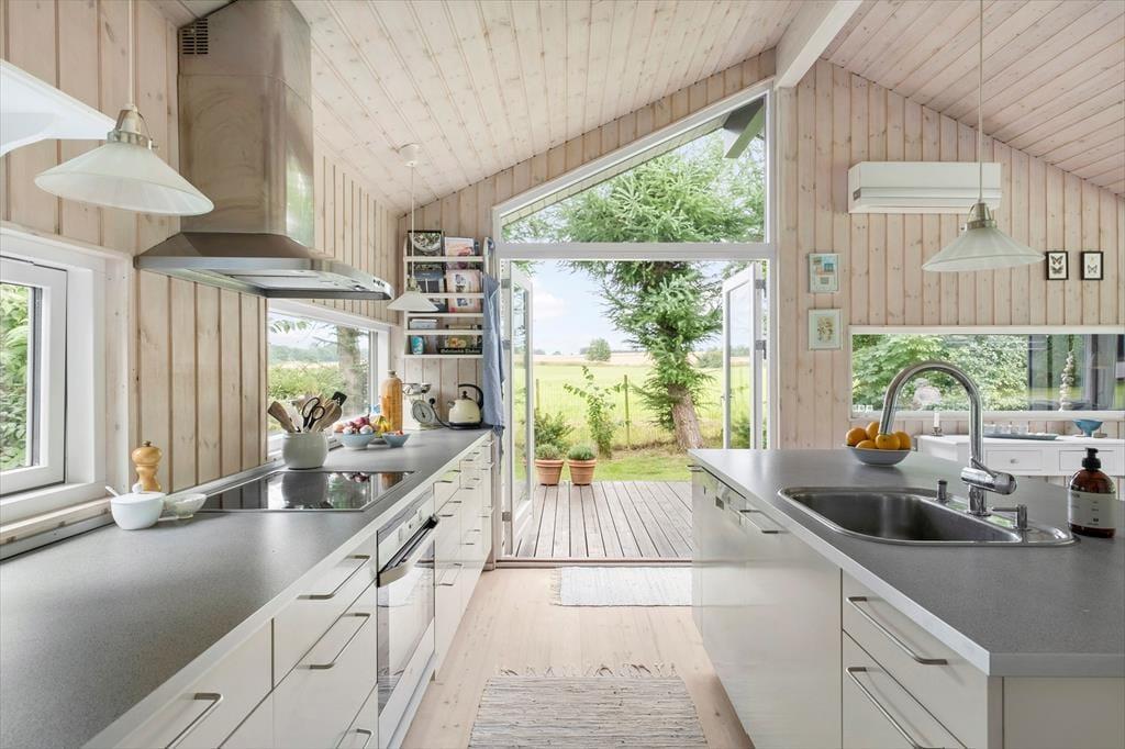 Das Ferienhaus verfügt über eine offene Küche, die mit dem hellen Wohnzimmer verschmilzt. Von hier aus genießen Sie einen fantastischen Blick auf die malerische Landschaft, die das Anwesen umgibt.