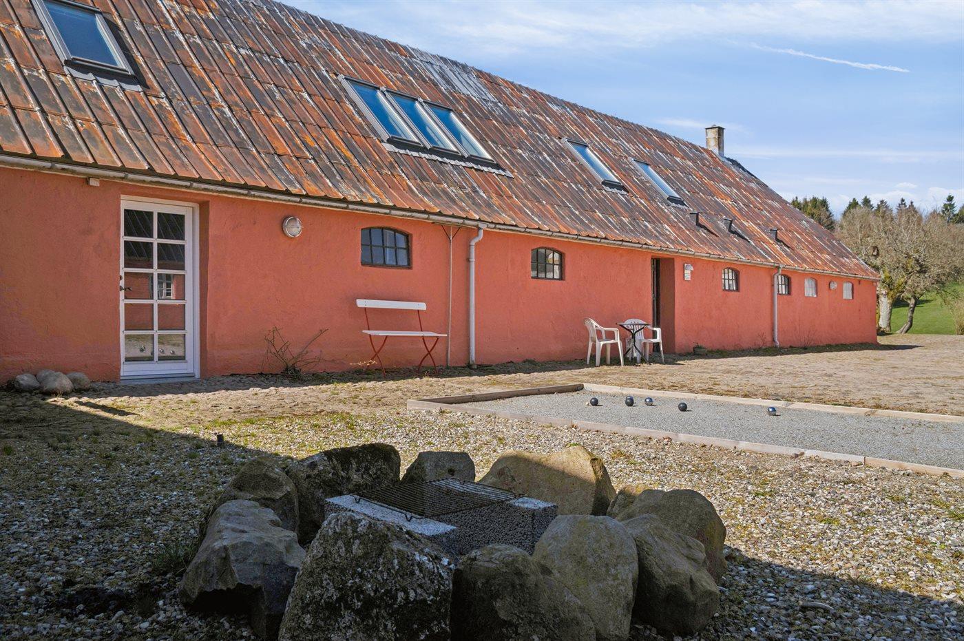 Historisches Ferienhaus in Randbøldal mit Charme, großem Grundstück und vielseitigen Freizeitangeboten für Familien und Gruppen.