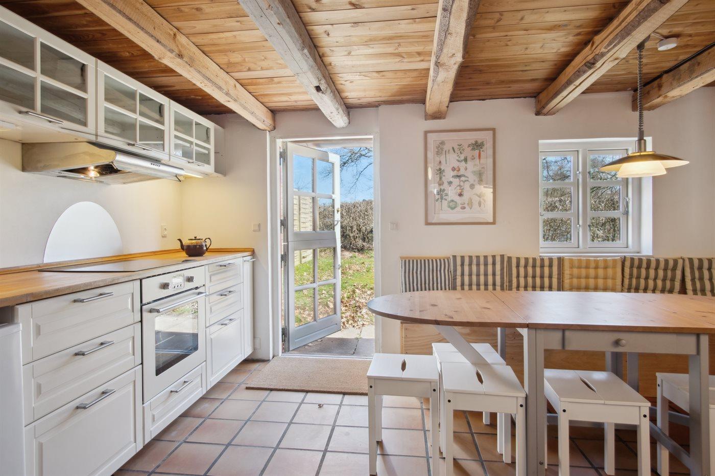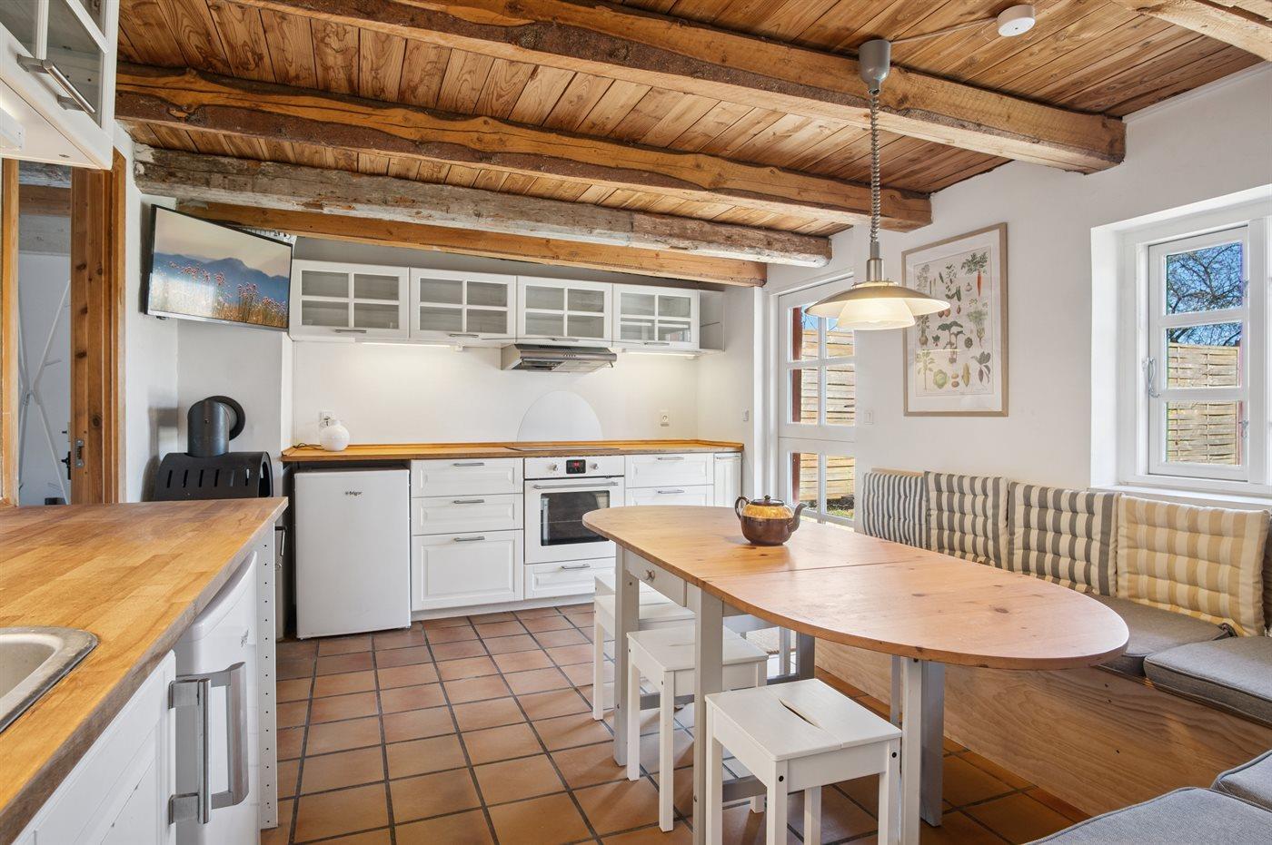 Älteres, historisches Haus, in dem die Wände Geschichten erzählen könnten. Die Küche und ihre Einrichtung sind in einem guten Zustand, aber nicht neu. Das Haus ist nicht so klinisch rein wie moderne Häuser, erzählt aber mit seinem Charme und Charakter eine unglaubliche Geschichte über das Leben.