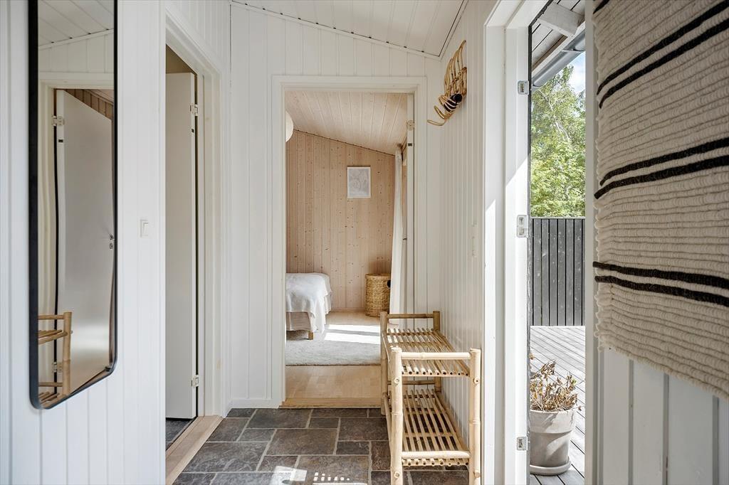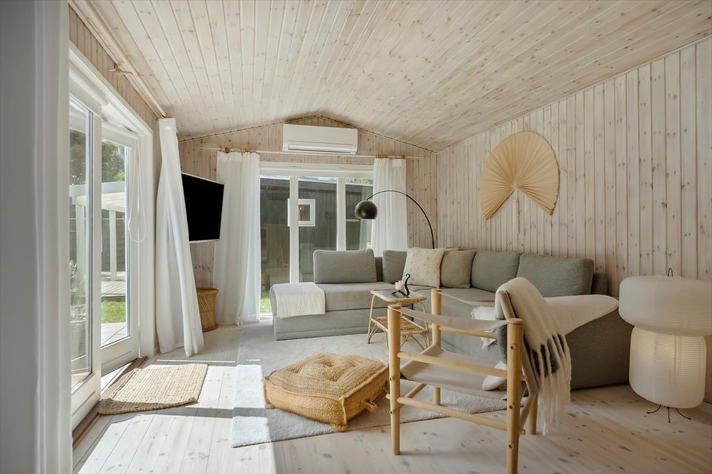 Willkommen in deinem Ferienhaus: Im Inneren erwartet Sie ein gemütlicher Eingangsbereich, der Sie weiter in die offene Küche führt. Diese ist mit dem Ess- und Wohnbereich verbunden und perfekt für gemeinsame Stunden geeignet. Das Haus verfügt über ein komfortables Schlafzimmer mit Doppelbett sowie ein schönes, helles Badezimmer mit Dusche. Zusätzlich gibt es ein geräumiges Annex mit einem weiteren Doppelbett. Die Einrichtung des Ferienhauses ist sehr einladend, geschmackvoll gestaltet und in hellen Farben gehalten, was eine wunderbar ruhige Atmosphäre schafft. An kühleren Tagen können Sie gerne den Kaminofen anfeuern und die Ruhe und typische Ferienhausstimmung genießen.