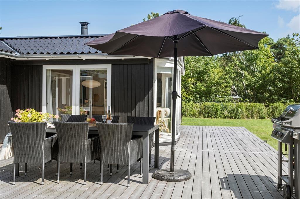Genieße das Leben im Freien: Das Haus befindet sich auf einem großen Grundstück in grüner Umgebung. Treten Sie aus dem Wohnzimmer hinaus auf die große, gemütliche Terrasse, wo Sie die Sonne genießen oder mit einem guten Buch entspannen können. Auch der umliegende Garten lädt zum Verweilen ein und bietet viel Platz für Aktivitäten. Am Abend können Sie ein leckeres Abendessen auf dem Grill zubereiten und die Urlaubsstimmung vollends aufkommen lassen.