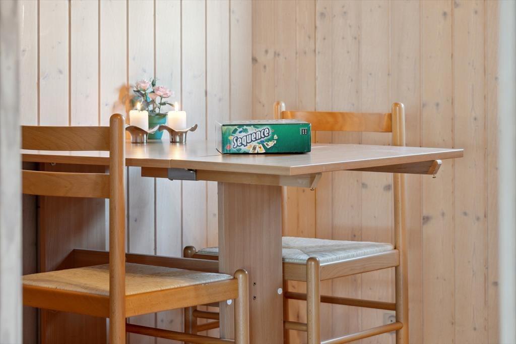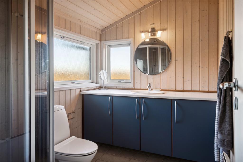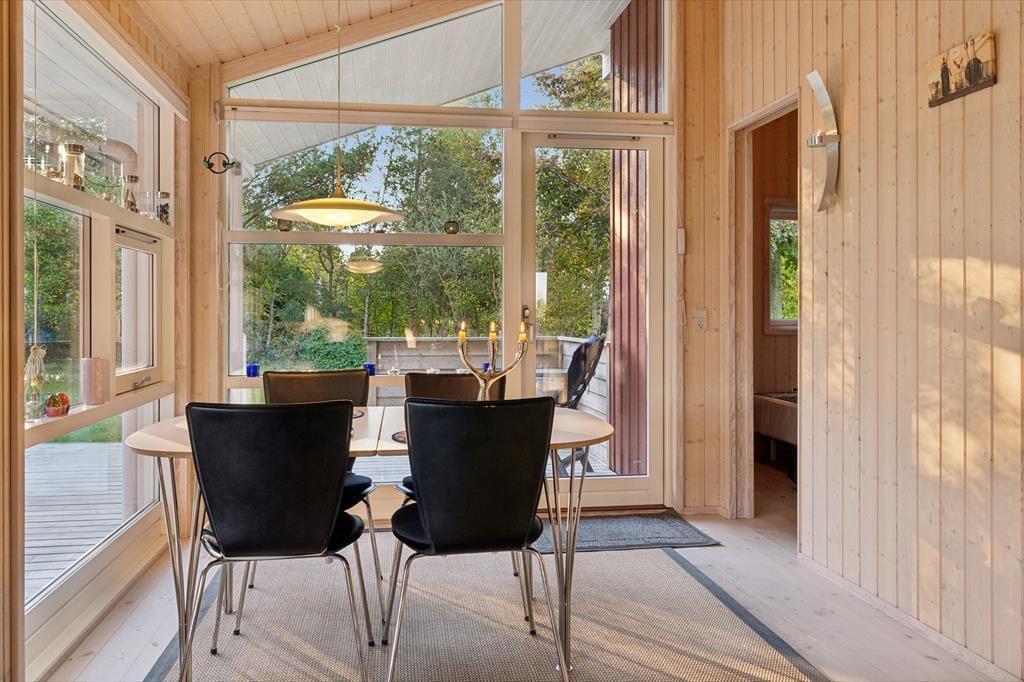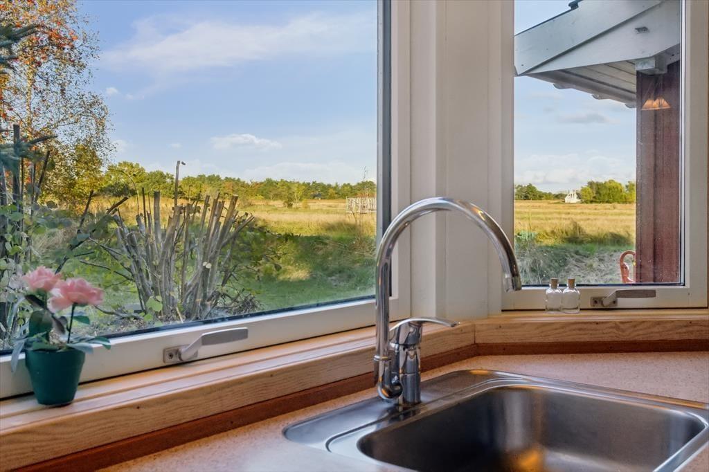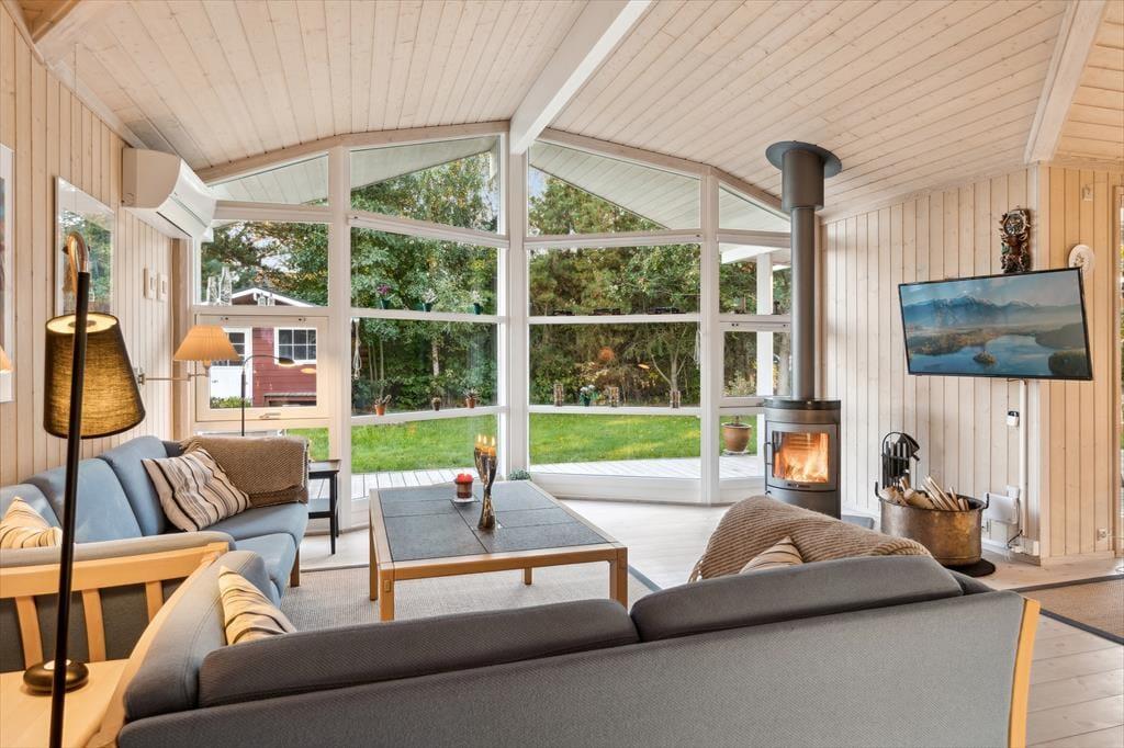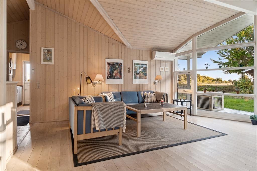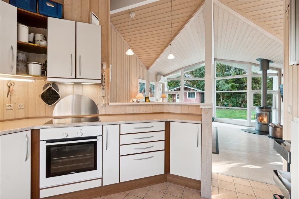 Willkommen in deinem Ferienhaus: Im Haus erwarten Sie große Fensterflächen mit viel Licht und Luft sowie ein einladender Wohnbereich, in dem sich die Familie versammeln kann. Wohnzimmer und Küche sind offen gestaltet, und neben dem reichlichen Tageslicht sorgt die bis zum Giebel offene Decke für ein großzügiges Raumgefühl. An kühleren Tagen können Sie gerne den Kaminofen anfeuern und die Ruhe genießen. Die Küche ist schlicht und hell eingerichtet, und vom Wohnbereich aus gelangen Sie in alle drei Schlafzimmer. Platzsparende Schiebetüren und ein gepflegtes Bad sowie ein praktischer Hauswirtschaftsraum mit Waschmaschine runden das Haus ab.