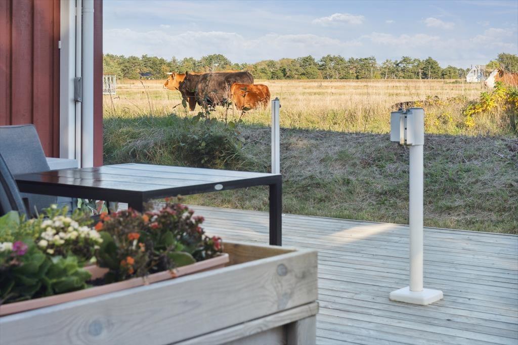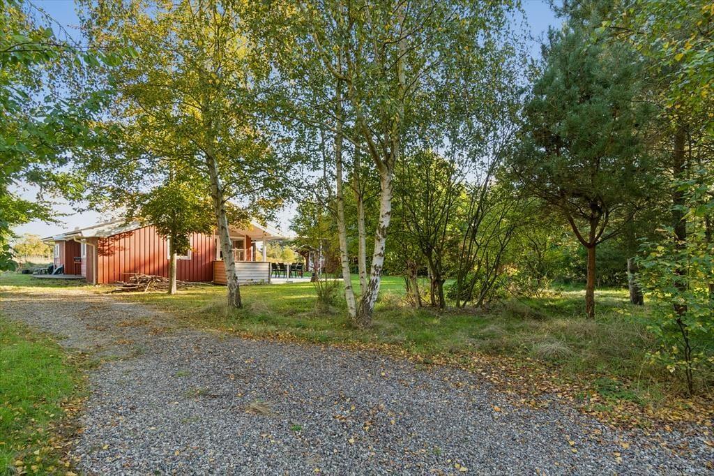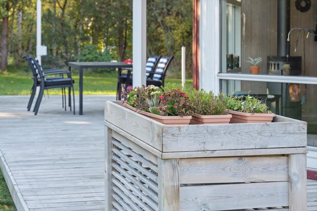 Genieße das Leben im Freien: Das Haus liegt in grünem Umfeld. Treten Sie hinaus auf die große, gemütliche Terrasse und in den gepflegten Garten. Hier können Sie Sonne, Ruhe und Entspannung pur erleben. Das Grundstück grenzt direkt an das Vogelschutzgebiet, Weiden mit Rindern und vor allem an das Gewässer Vejlen – die Aussicht ist also einfach großartig. An der Westseite des Grundstücks spenden hohe, alte Bäume wohltuenden Schatten und vermitteln ein Gefühl von Waldnähe. Außerdem gibt es großzügige Obstbäume mit Äpfeln, Birnen und Pflaumen.