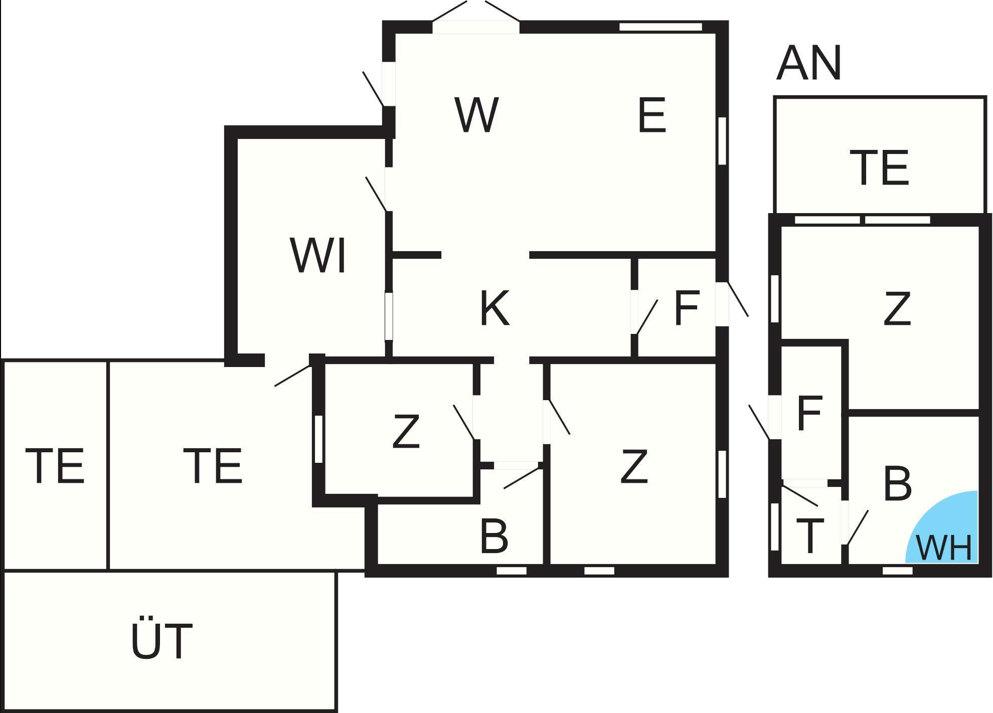 Off. Küche: E-Herd, Kühl-Gefrier-Kombi, Mikrow., Abzugsh., Kaffeem., Spülm.