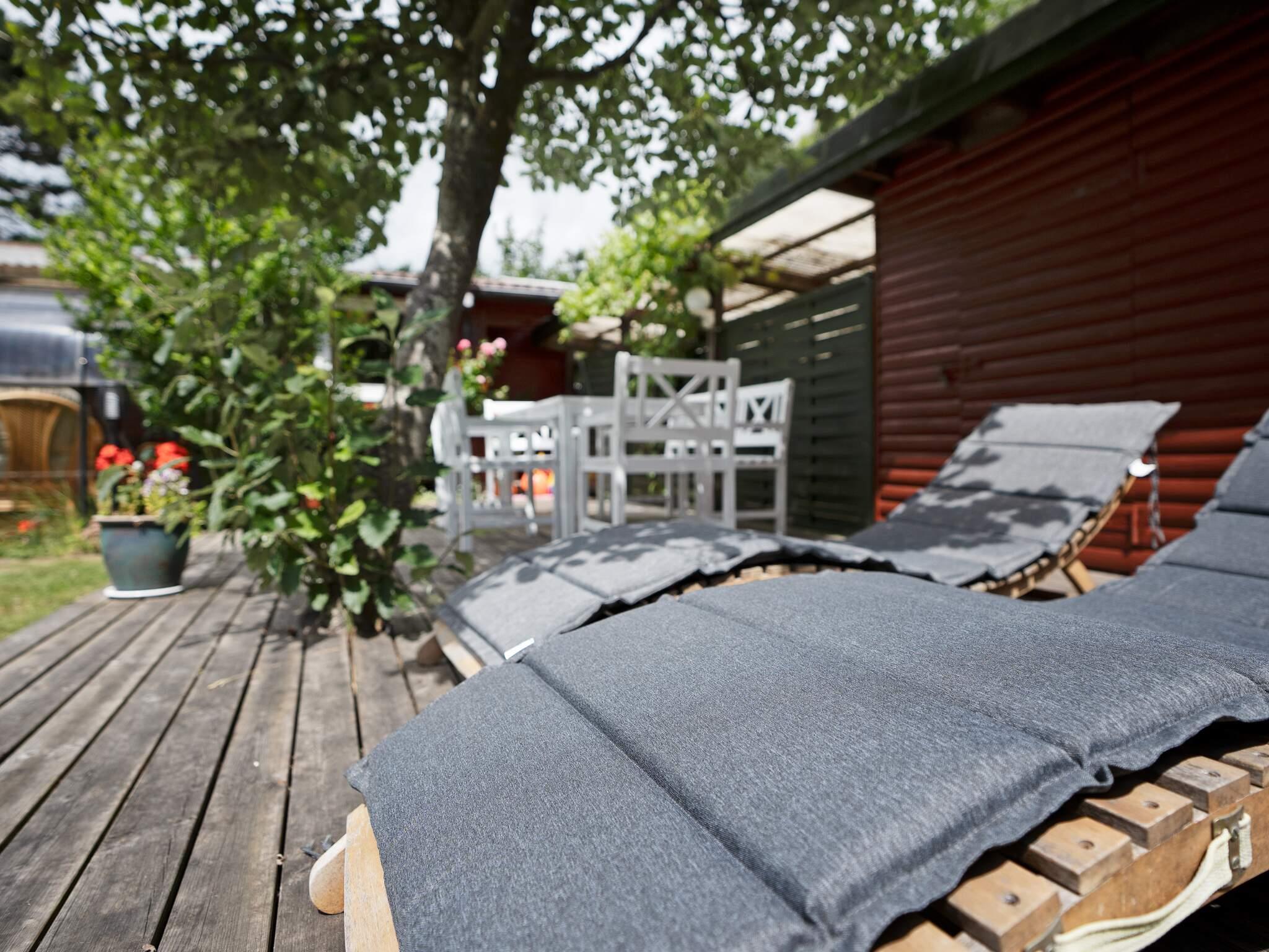 Das eingezäunte Grundstück bietet eine geschützte Fläche für Kleinkinder und Vierbeiner. Im Haus offener Küchen-/Wohnbereich für das Familienleben mit Ess- und Sitzecke sowie Zugang zu der 16 m² großen, verglasten Veranda, auf der Sie auch an kühleren Tagen die Sonne genießen können. Im Haus zudem zwei Schlafzimmer mit jeweils einem Doppelbett und ein Badezimmer mit Dusche und WC.