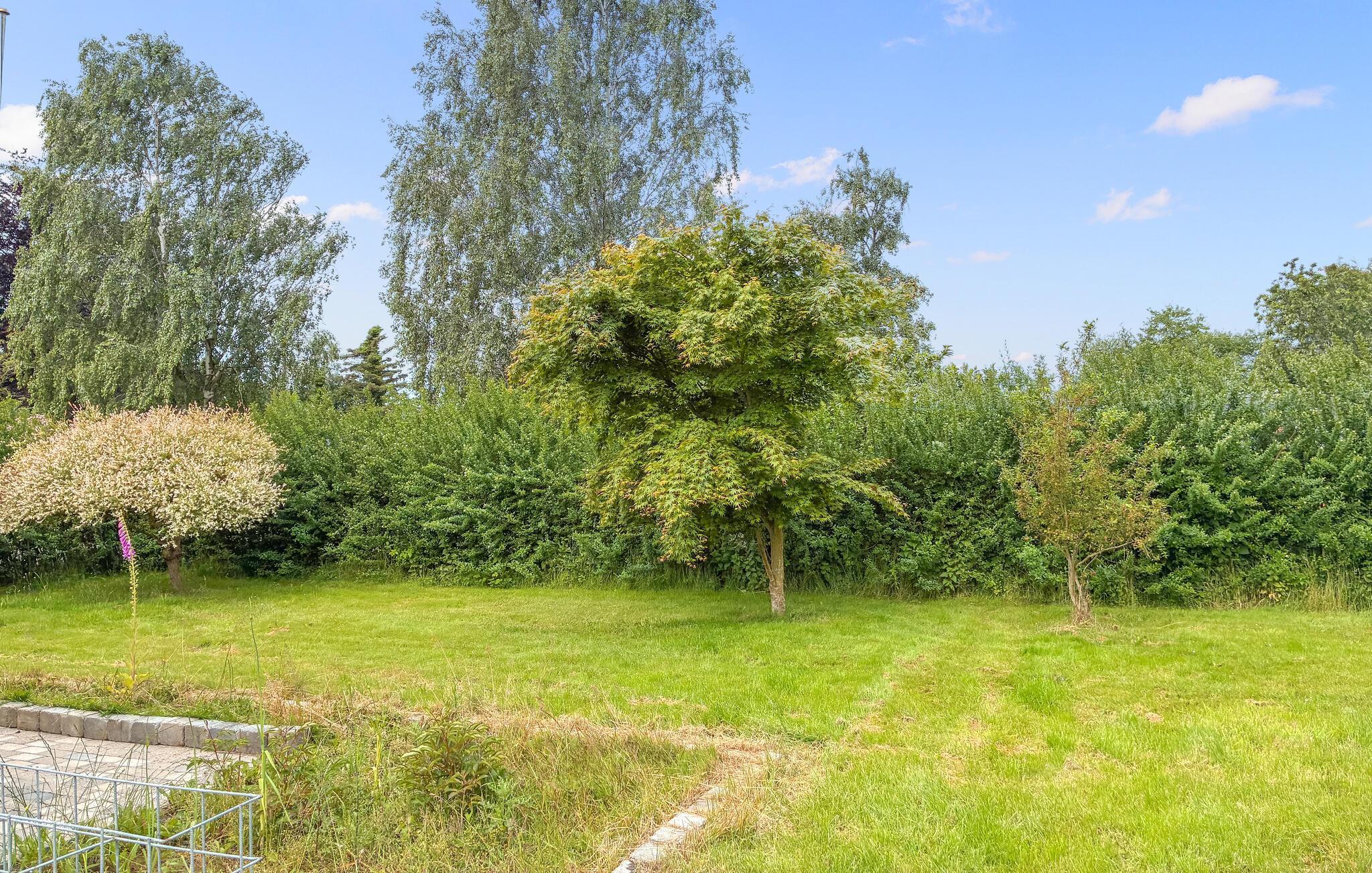 Rund ums Haus sorgen Bäume für eine wohltuende Kulisse. Genießen Sie die freie Urlaubszeit und die frische Luft auf den Gartenmöbeln bei einer Tasse Kaffee oder einem Erfrischungsgetränk. Und spielen Sie gemeinsam lustige Ballspiele auf dem Rasen.