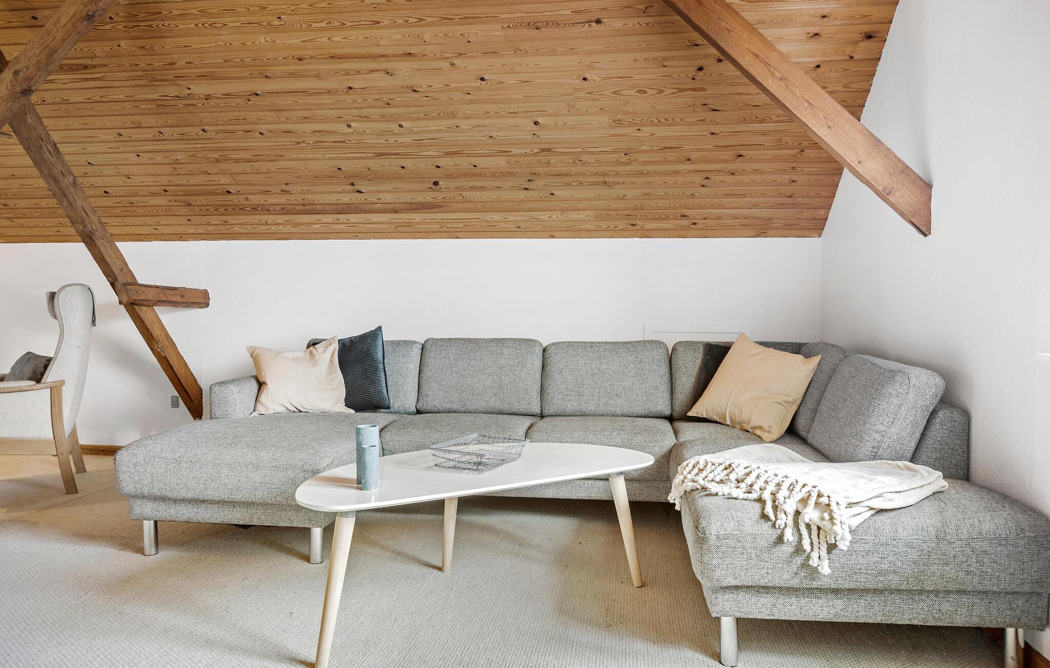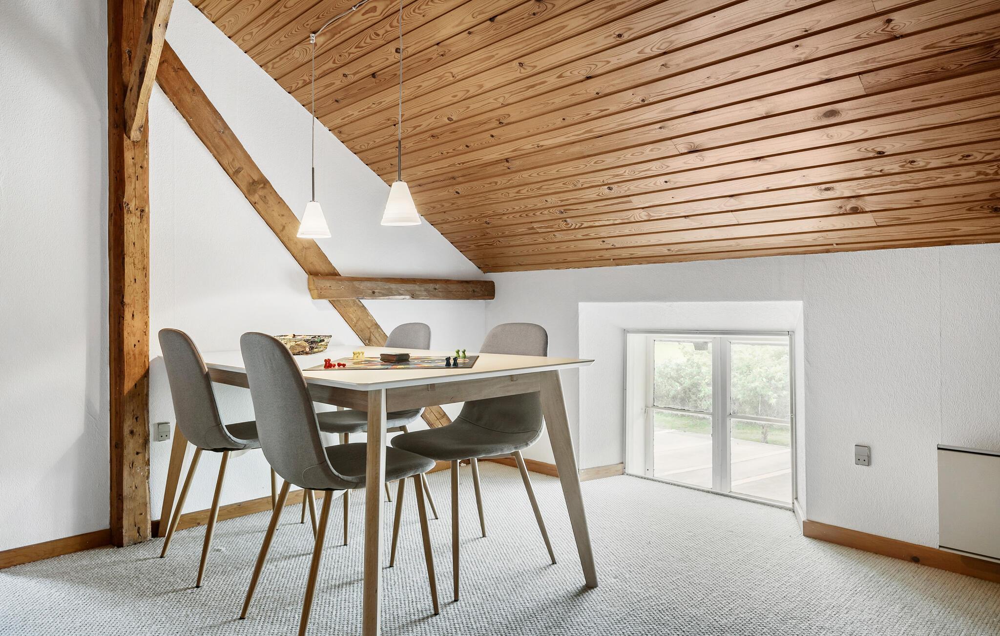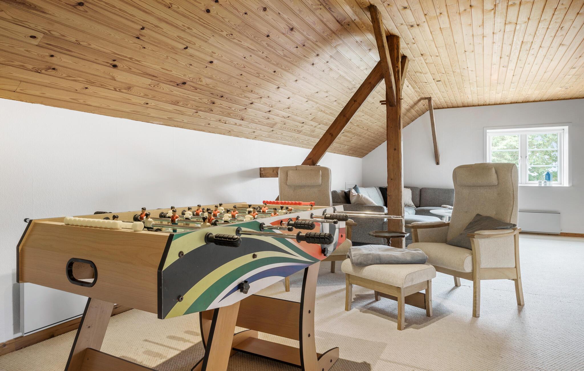 Freuen Sie sich auf Ihren Urlaub in Rejsby und genießen Sie die ländliche Ruhe und den Komfort dieses charmanten Ferienhauses. Das geräumige Haus, umgeben von malerischer Natur, bietet Ihnen die ideale Ausgangsbasis für erholsame Tage mit der ganzen Familie. Beginnen Sie Ihren Tag mit einem gemütlichen Frühstück in der modernen, großzügigen Essküche, die Platz für gemeinsame Mahlzeiten und geselliges Beisammensein bietet. Nutzen Sie die einladenden Wohnbereiche des Hauses, um zu entspannen. Machen Sie es sich auf den bequemen Sofas gemütlich und genießen Sie die angenehme Atmosphäre des Hauses. Der helle Wintergarten mit seiner herrlichen Aussicht auf die umliegende Landschaft ist der ideale Ort, um gemeinsam zu speisen, in Ruhe ein Buch zu lesen oder einfach die Seele baumeln zu lassen. Im Obergeschoss erwartet Sie ein Spielzimmer mit einem Tischkicker, das besonders bei den jüngeren Gästen für Begeisterung sorgen wird.