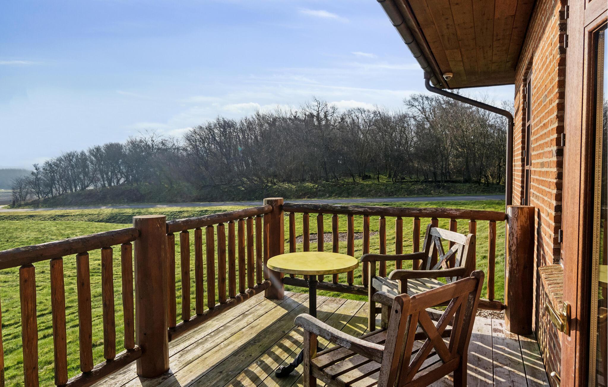 Das weitläufige Grundstück bietet viel Platz und eine direkte Nähe zur Natur. Treten Sie hinaus auf die Terrassen und genießen Sie die Aussicht, die sich über weite Wiesen, kleine Hügel und bis zum Wasser erstreckt. Die Terrassen sind mit verschiedenen Sitzmöglichkeiten ausgestattet und eignen sich ideal für ruhige Stunden im Freien. Setzen Sie sich an den kleinen Tisch, lassen Sie den Blick schweifen und nehmen Sie die klare Luft dieser ruhigen Umgebung in sich auf.