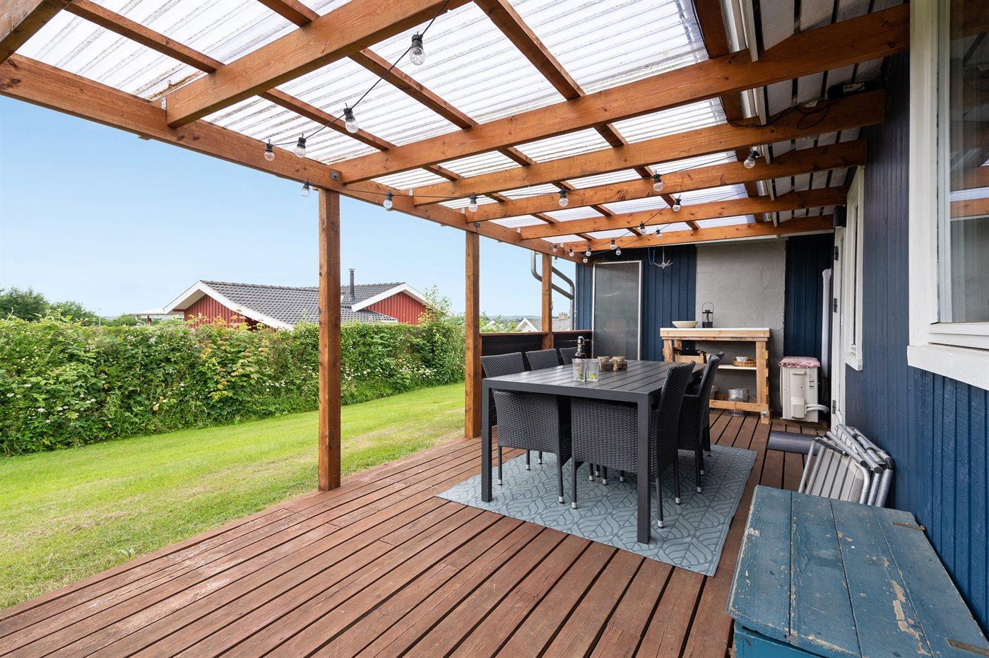 Dieses ältere, aber sehr gepflegte Ferienhaus liegt erhöht auf einem abgeschlossenen Weg – mit herrlichem Blick aufs Wasser sowohl vom Haus als auch vom Grundstück. Es ist ideal für 6 Personen und ein Kind bis 3 Jahre. Das Haus ist 84 m² groß und wurde 1974 erbaut. In den Jahren 2020 und 2025 wurde es teilweise renoviert. Zum Haus gehört außerdem ein isoliertes Annex von 2020 mit zwei Schlafplätzen. Haustiere sind nicht erlaubt.