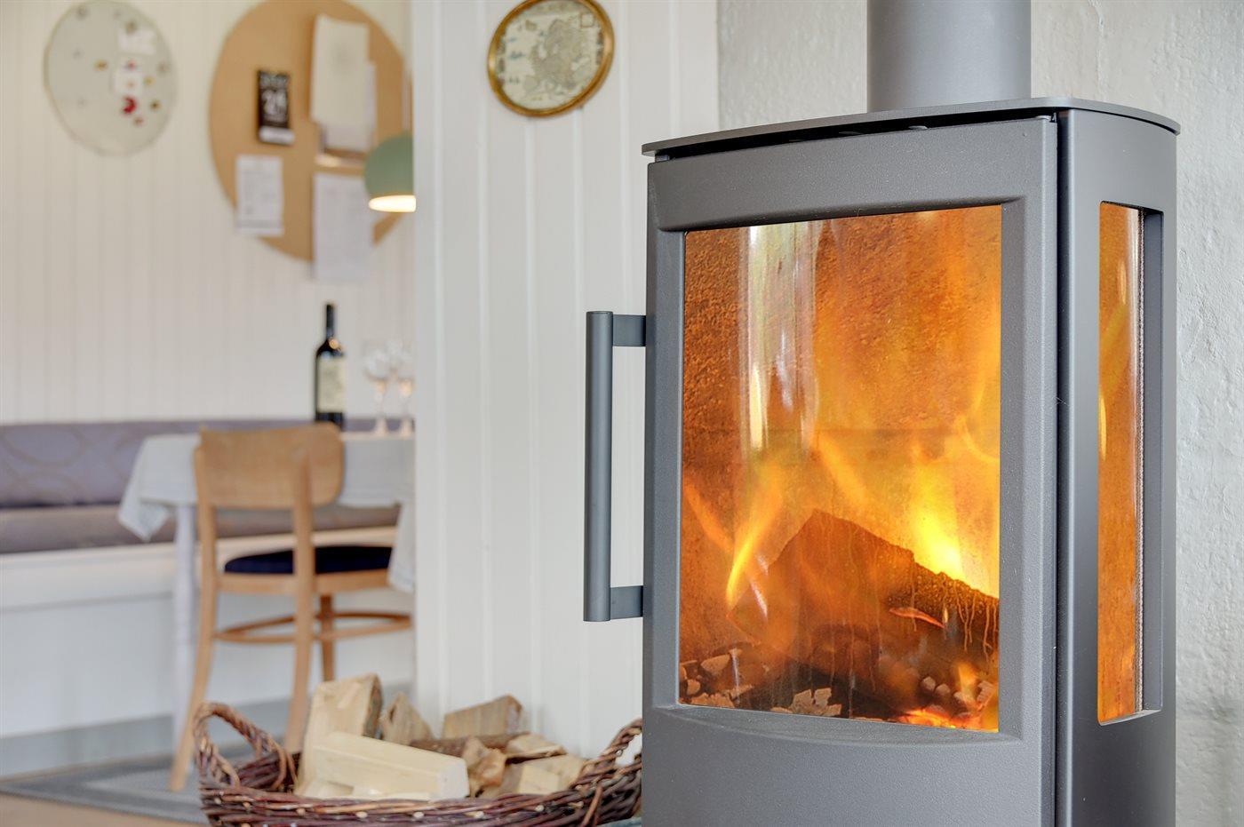 Eine energiesparende Wärmepumpe sorgt zusammen mit dem gemütlichen Kaminofen für angenehmes Raumklima. Es gibt auch eine Waschmaschine. Das Ferienhaus liegt auf einem 802 m² großen Gartengrundstück – nur 500 Meter vom Meer entfernt. Der nächste Supermarkt ist 2.500 Meter entfernt.