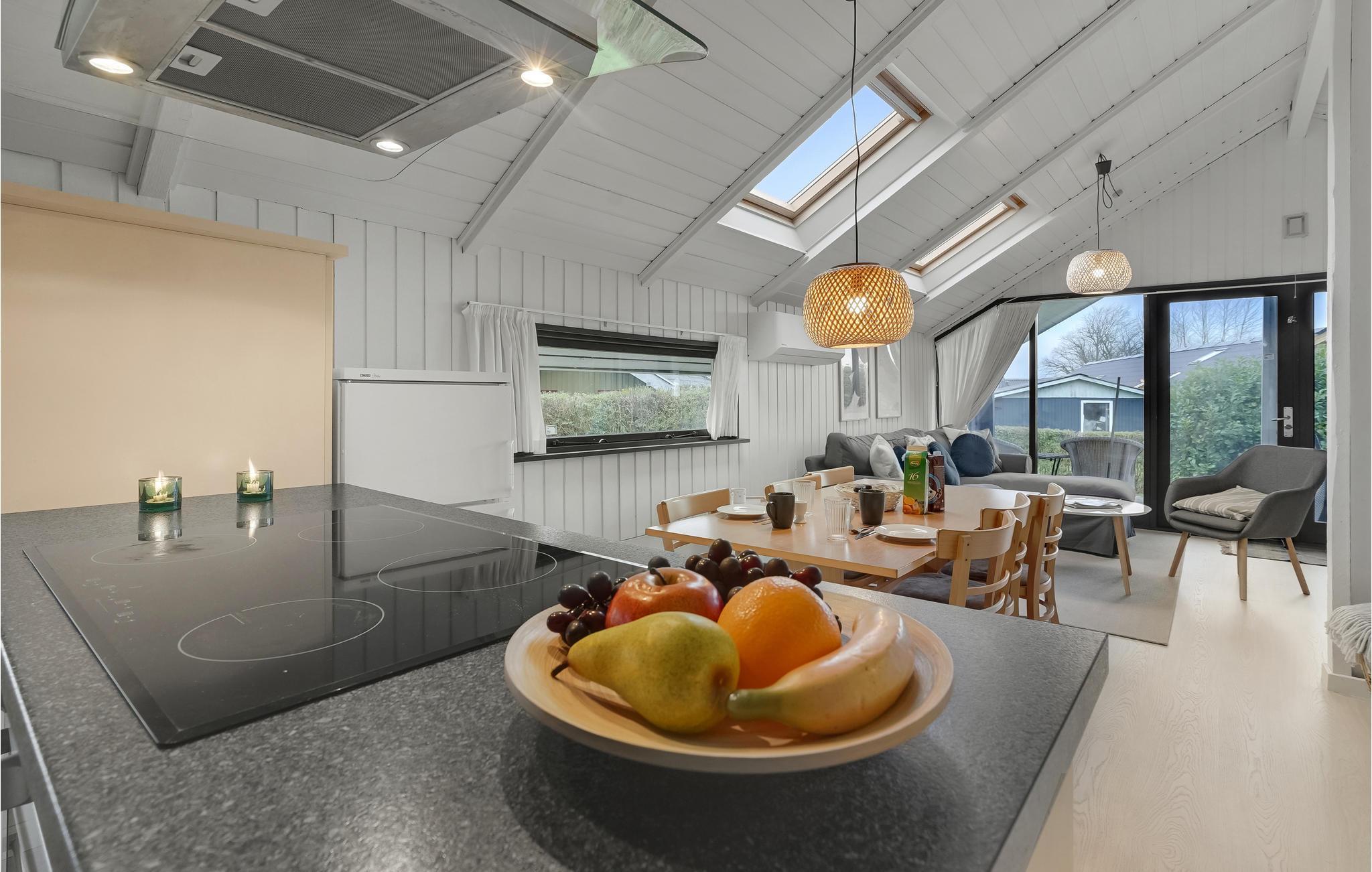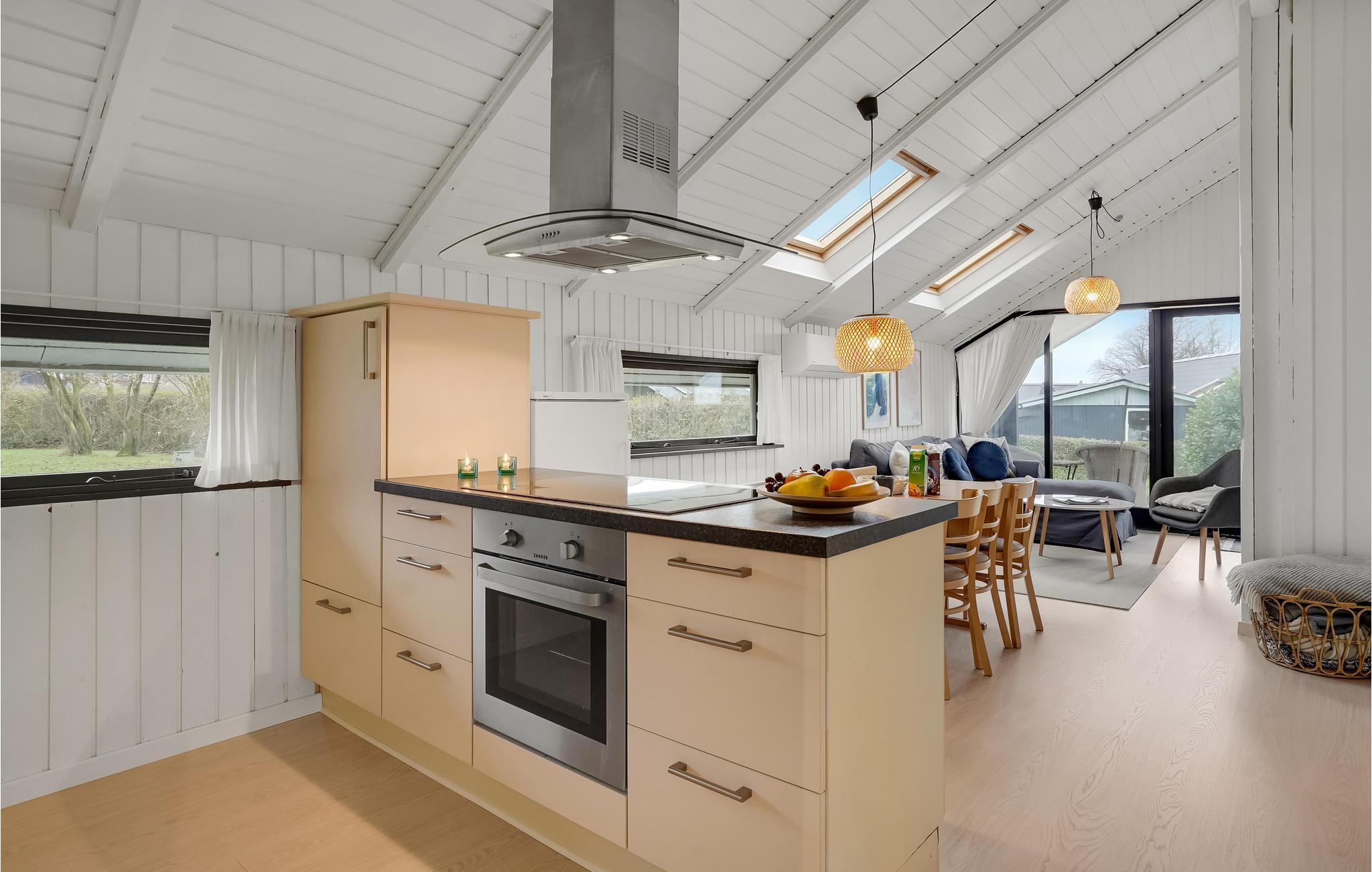 Ihr Ferienhaus strahlt klassischen dänischen Sommerhaus-Charme aus und besticht durch eine geschmackvolle Einrichtung, ein angenehmes Lichtspiel und eine moderne Farbgebung, die dem Interieur eine stilvolle Note verleiht. Machen Sie es sich auf dem gemütlichen Sofa bequem, genießen Sie die Ruhe und den herrlichen Blick auf den Garten. Die moderne Küche lädt zu gemeinsamen Kochabenden ein, bei denen Sie sich kulinarisch verwöhnen können.