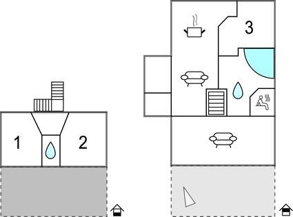 Badezimmer (nr. 1) - WC. Warmes und kaltes Wasser. Dusche