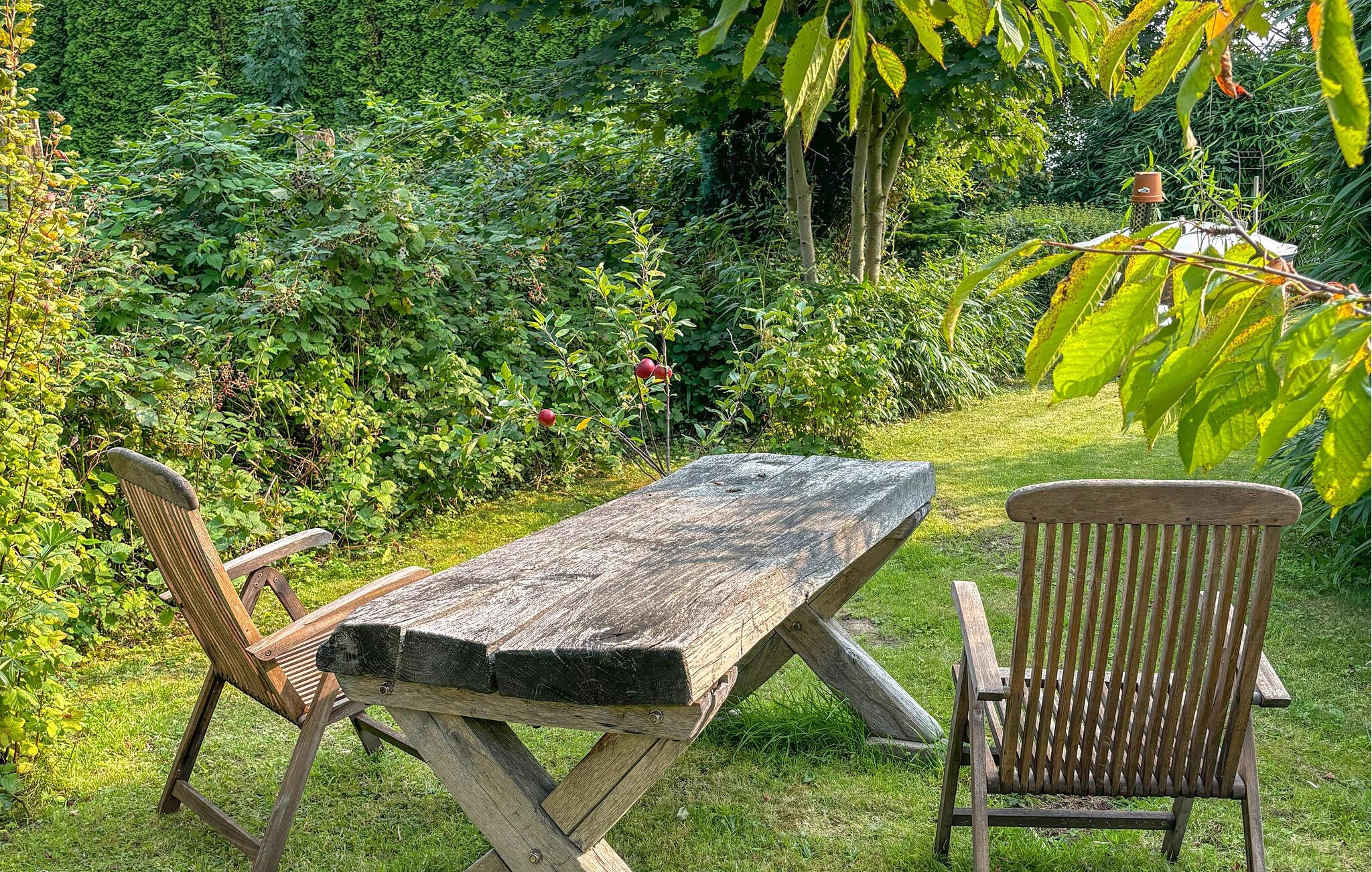 Verweilen Sie anschließend auf der Terrasse und spüren Sie die klare Luft. Servieren Sie hier ein leckeres Abendessen und setzen Sie sich anschließend auf die urige Holzbank im Garten, um den Tag in aller Ruhe ausklingen zu lassen.