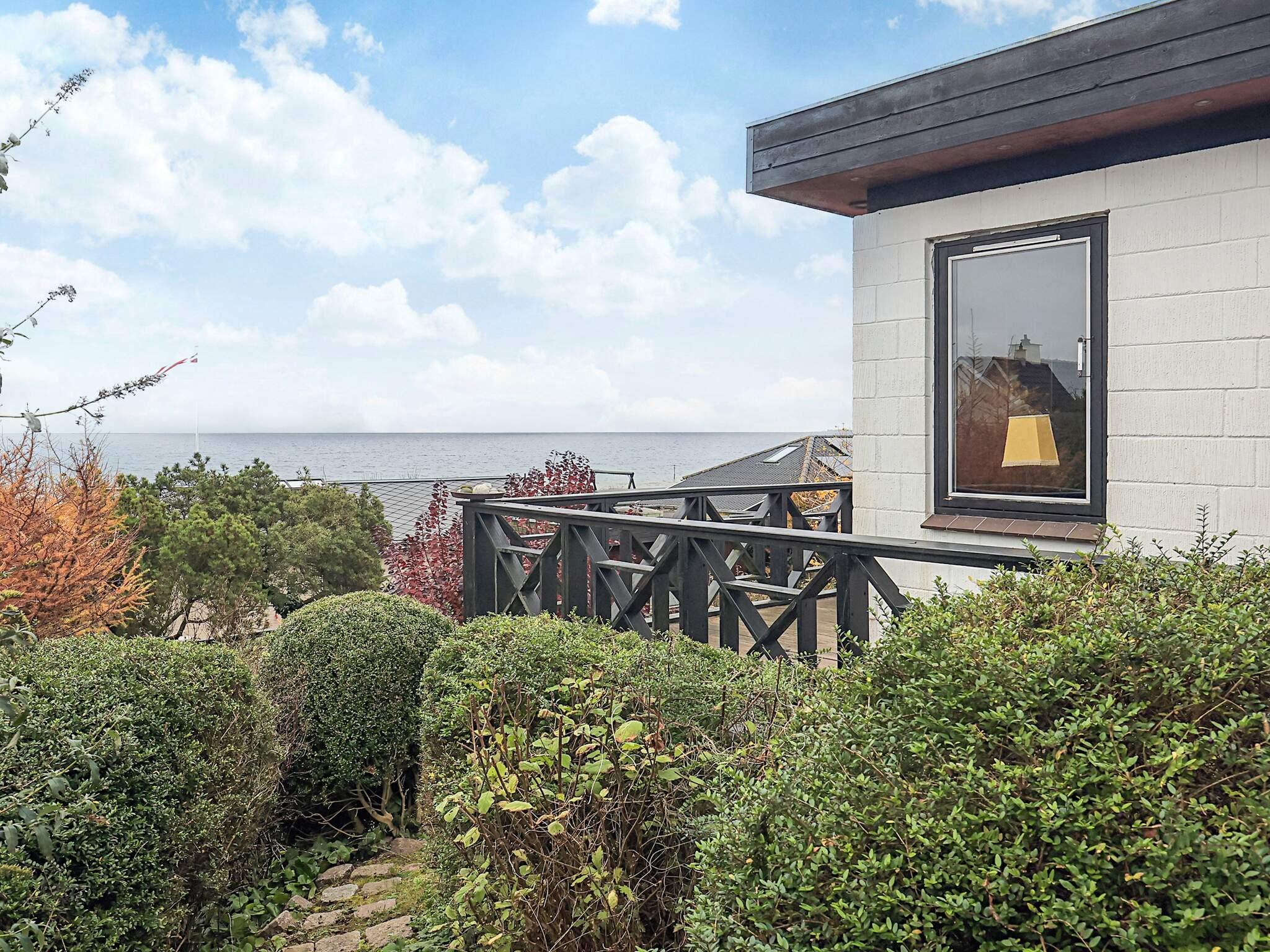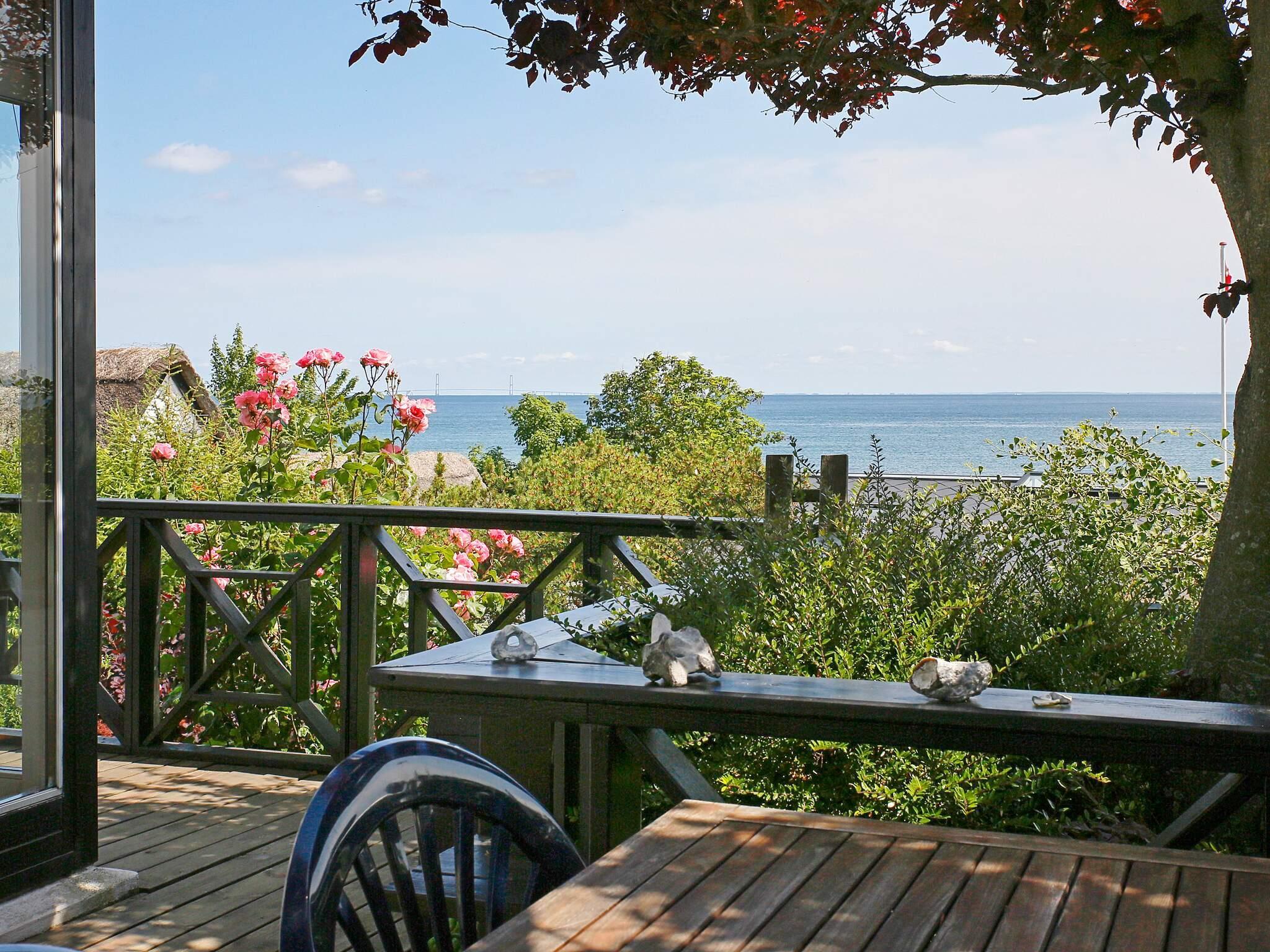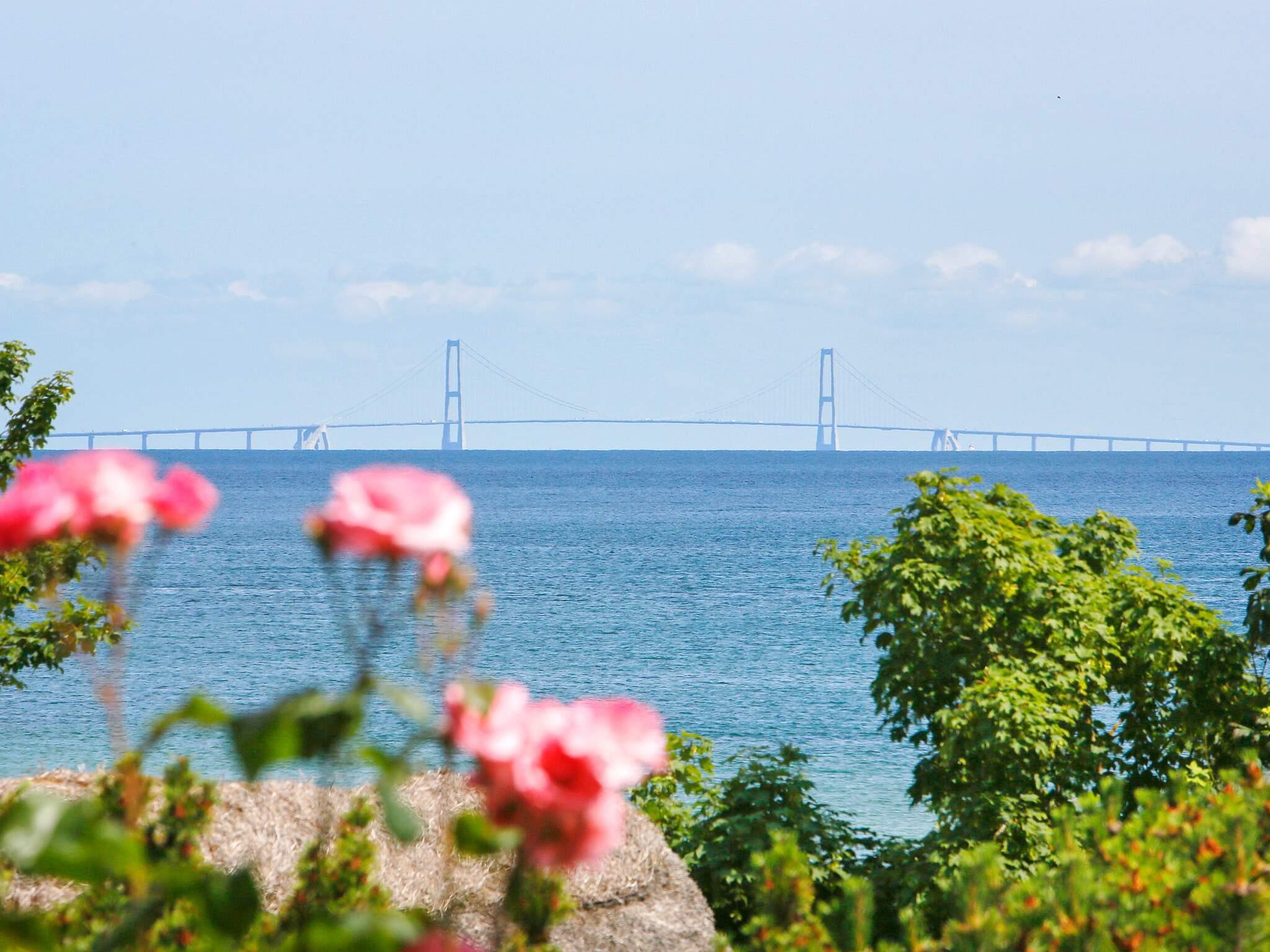 Hochgelegenes, authentisches Ferienhaus in zweiter Reihe mit herrlichem Blick auf das Wasser und die Große-Belt-Brücke.