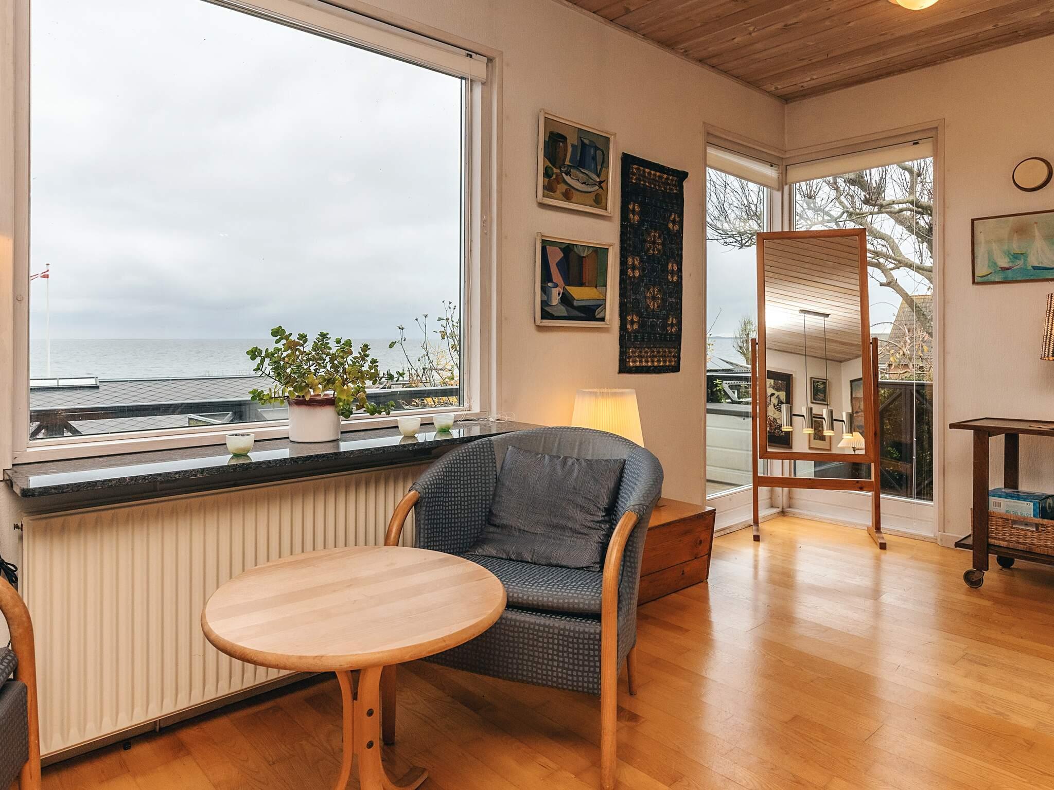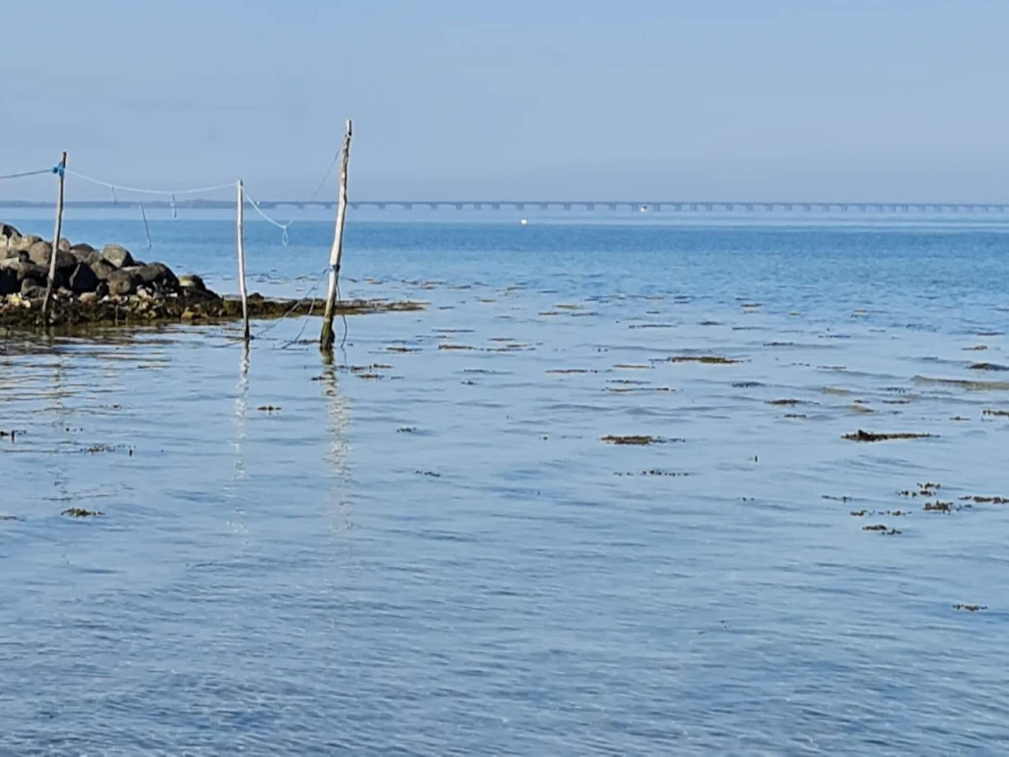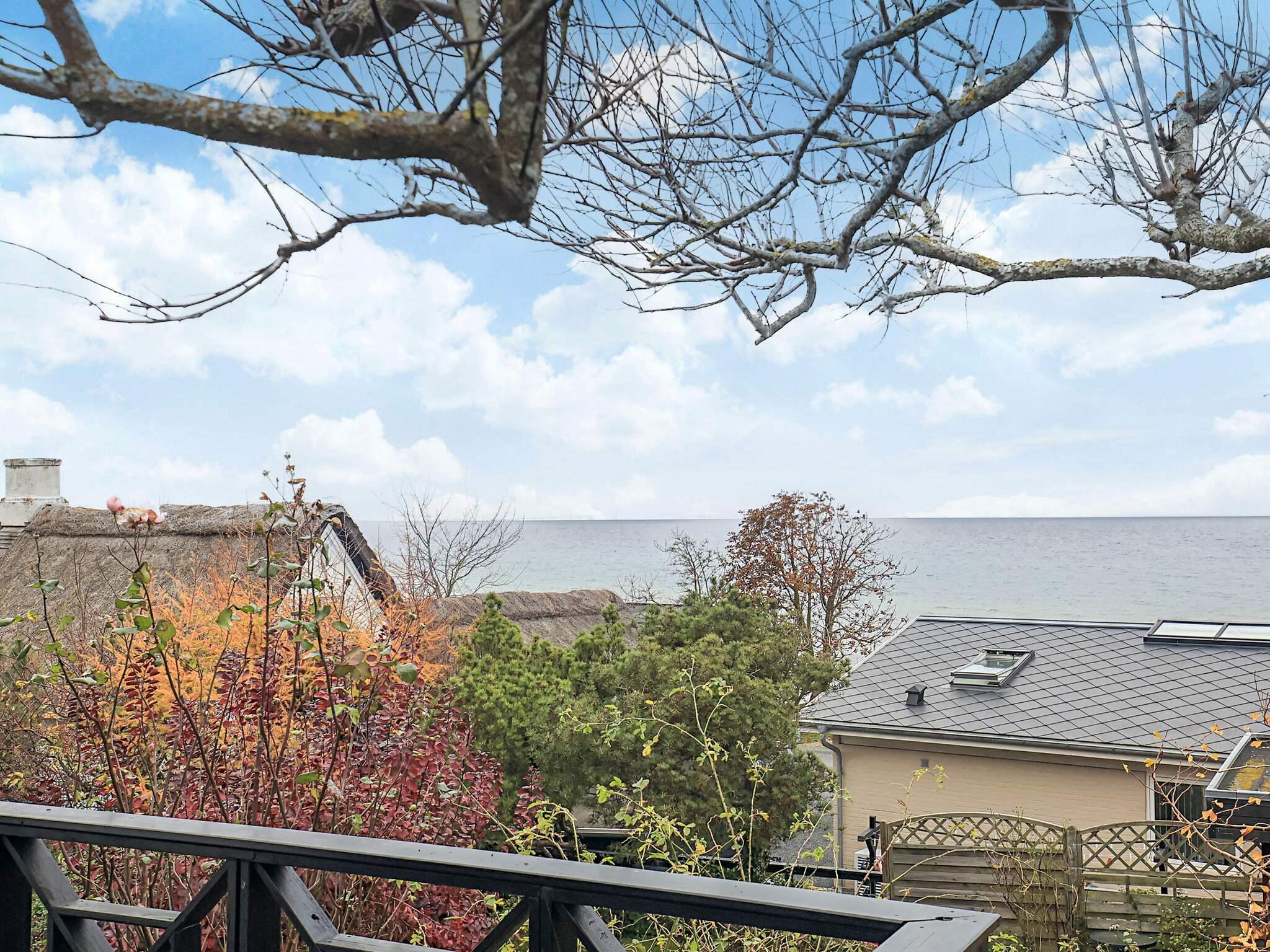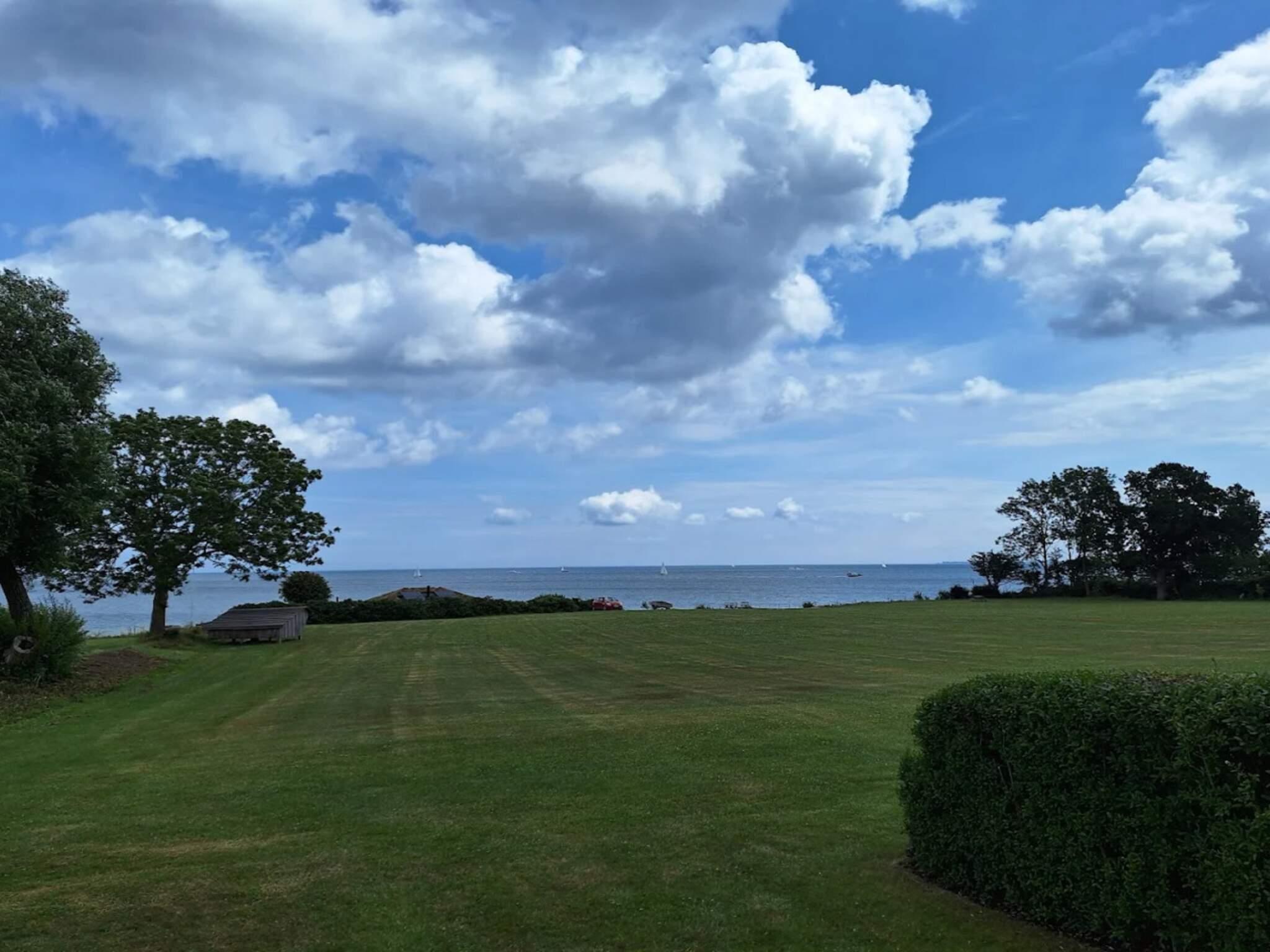 Hochgelegenes, authentisches Ferienhaus in zweiter Reihe mit herrlichem Blick auf das Wasser und die Große-Belt-Brücke.