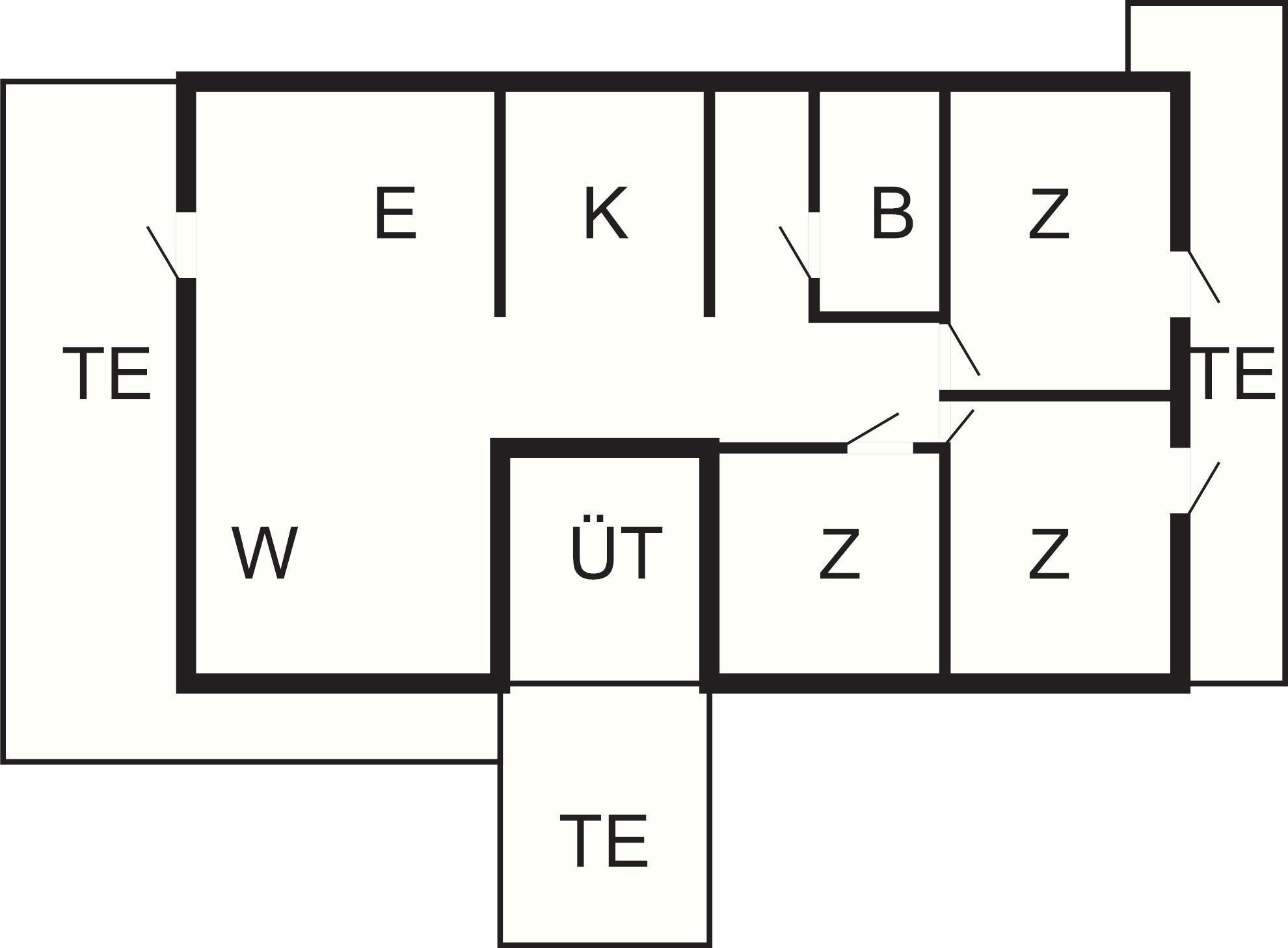 Off. Küche: E-Herd, Kühlschr., Gefriertruhe 100-139 l., Abzugsh., Kaffeem., Spülm.