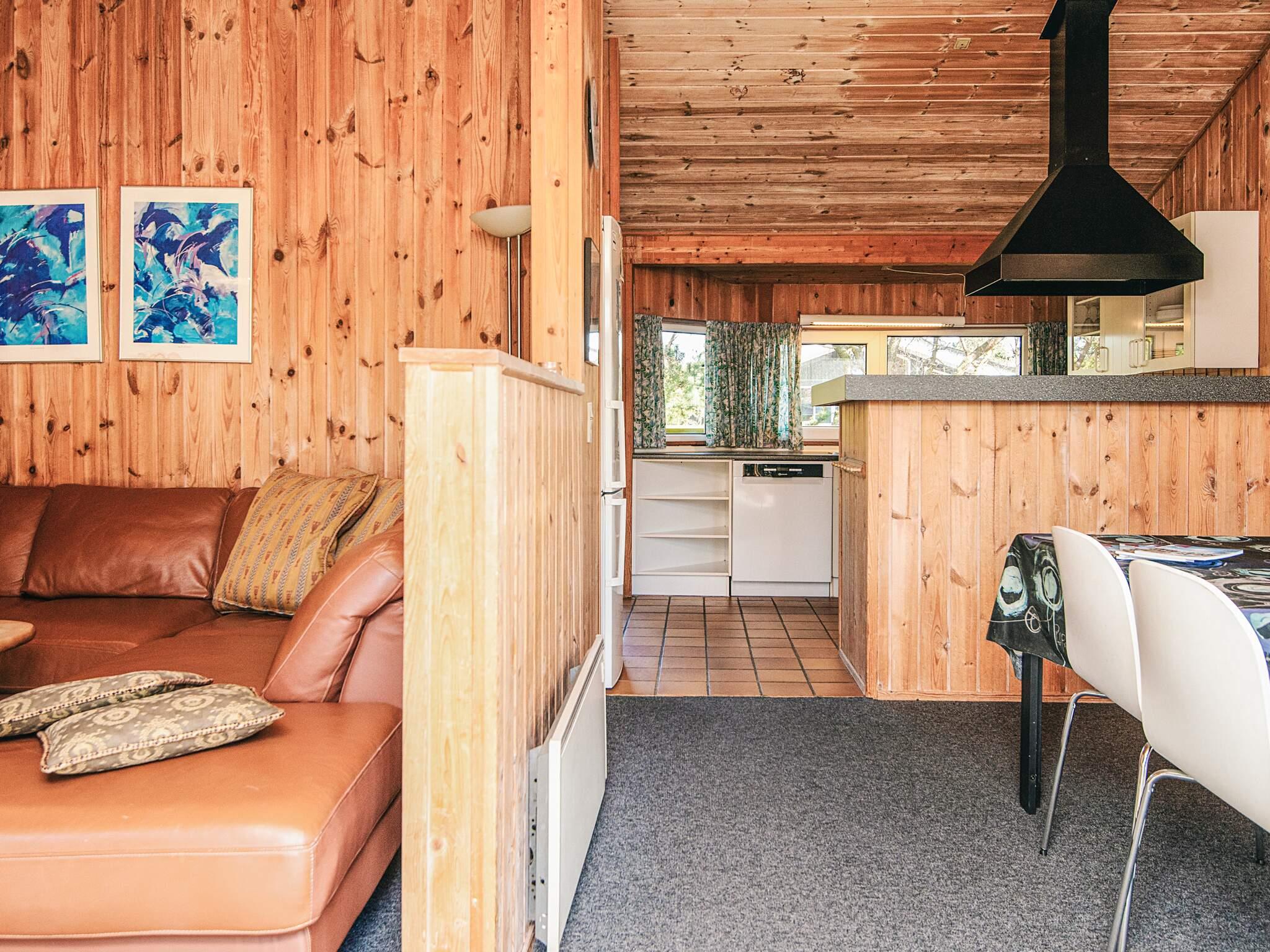 Dieses Ferienhaus liegt bei Rindby, auf einem attraktiven Naturgrundstück mit zahlreichen Bäumen und hohem, schützendem Gebüsch. Das Haus ist gemütlich eingerichtet, die durchgehende Holzverkleidung trägt zudem zum wohnlichen Ambiente bei. Im geräumigen Badezimmer stehen auch ein größerer Whirlpool für max. vier Personen sowie eine kleinere Sauna bereit.