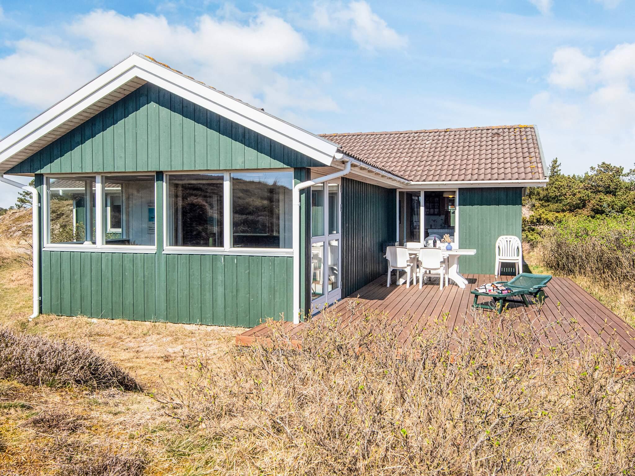 Wechseltag Freitag - Das 1.800m2 große Naturgrundstück dieses Ferienhauses ist einfach fantastisch. Von der großen Düne neben dem Haus hat man einen großartigen Ausblick, bis zur Nordseeküste am Horizonnt. Im Ferienhaus gibt es einen offenen Küchen-/Wohnbereich für das Familienleben, mit Ess- und Sitzecke sowie gemütlichem Holzofen für kühlere Abende. Zudem windgeschützte, verglaste Veranda am Haus mit Zugang weiter zur großen, neuen Ostterrasse des Hauses. Außerdem stehen ein Badezimmer mit Dusche/WC sowie drei Schlafzimmer zur Verfügung: eines mit Doppelbett, das zweite mit zwei Einzelbetten und das dritte mit einem Etagenbett. Im Nebengebäude befindet sich eine Waschmaschine. Sie wohne hier in einer landschaftlich reizvollen, ruhigen Umgebung mit einer kleinen Stichstraße ohne Durchgangsverkehr.