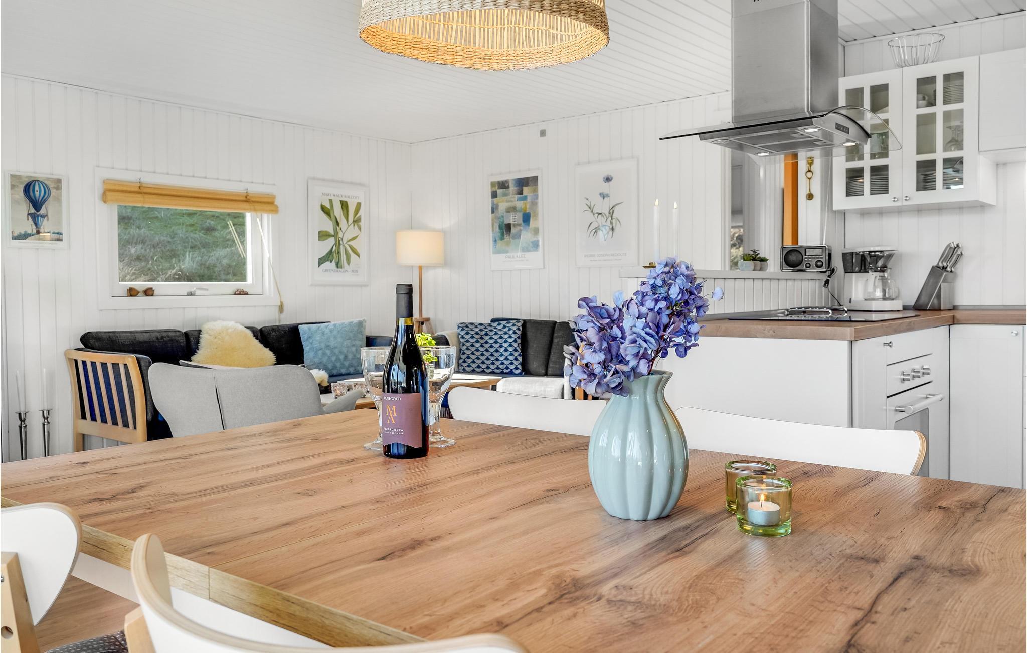 Im Innenraum erwartetet Sie eine geräumige Unterkunft, die viel Tageslicht hineinlässt. Das Ferienhaus ist mit gemütlichem Inventar, netten Dekorationselementen und Holzverkleidungen eingerichtet. Finden Sie sich zu einem gemeinsamen Frühstück auf der Veranda zusammen und entspannen Sie sich im Sonnenschein auf der Terrasse.