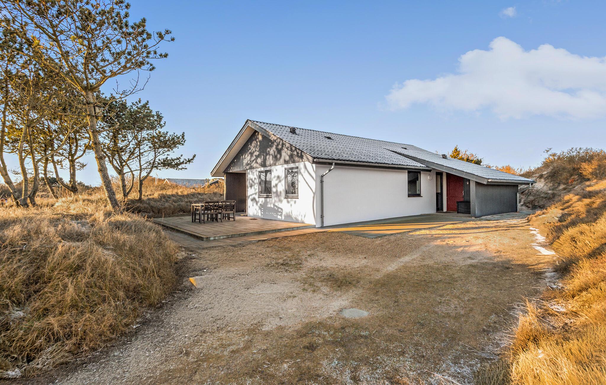 Ein gemütliches Ferienhaus in Dünenlandschaft nahe Fanöstrand, ideal für Entspannung und Aktivitäten in der Natur.