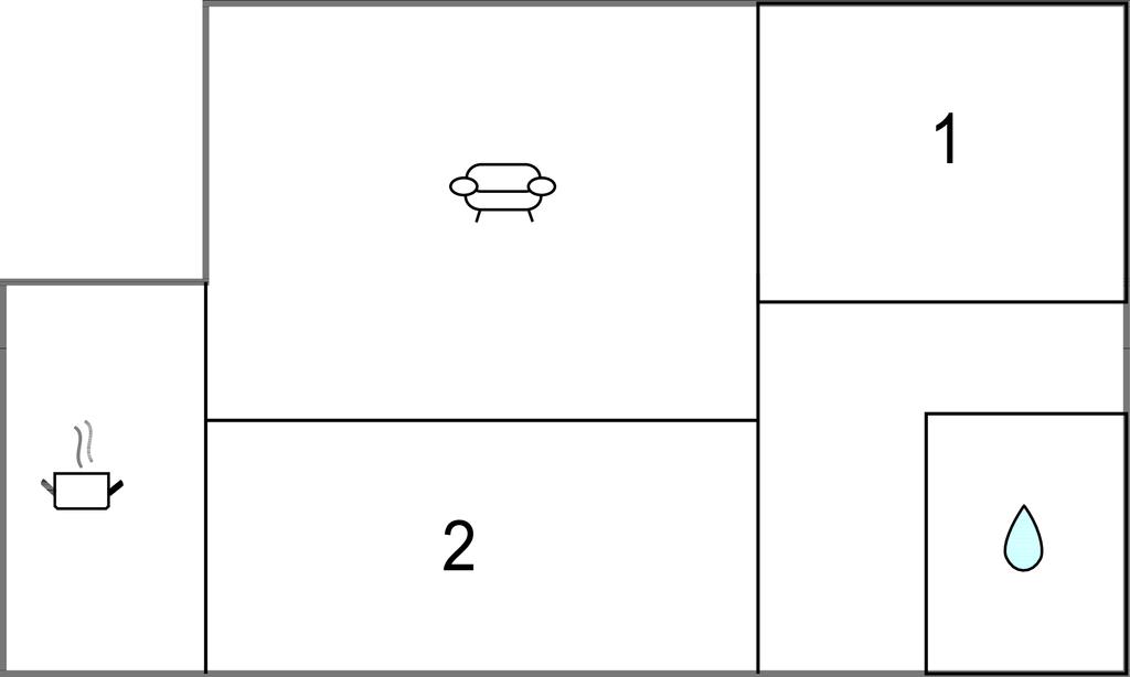 Schlafzimmer (nr. 2) - 1 Schlafmöglichkeit. (Einzelbett(en)). 2 Schlafmöglichkeiten. (Doppelbett(en)).