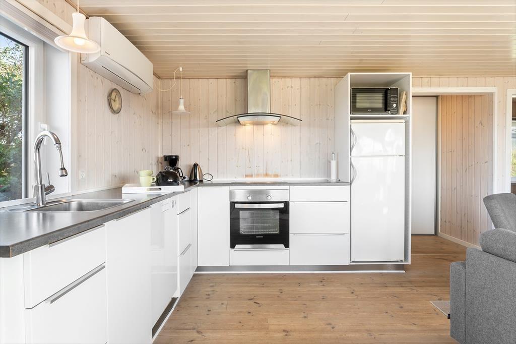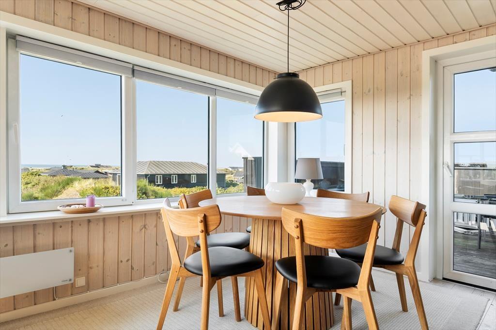 Das Ferienhaus erhebt majestättisch in der Dünen von Kringelkrog 8, daher musst du eine Treppe vom Parkplatz aus hinaufsteigen, um zur Haustür zu gelangen und durch das natürliche, hügelige Gelände gehen. Doch die Mühe wird belohnt mit einem atemberaubenden Blick über das malerische Ferienhausgebiet von Rindby und die Nordsee, der sich dir bietet, sobald du ankommst - egal, ob du dich drinnen am knisternden Kamin im Wohnzimmer entspannst oder mit deinen Liebsten an einem köstlichen Essen am runden Esstisch teilnimmst. Die gut ausgestattete, offene Küche lädt dazu ein, Mahlzeiten zuzubereiten, und in den drei einladenden Schlafzimmern findest du reichlich Platz für erholsame Nächte.