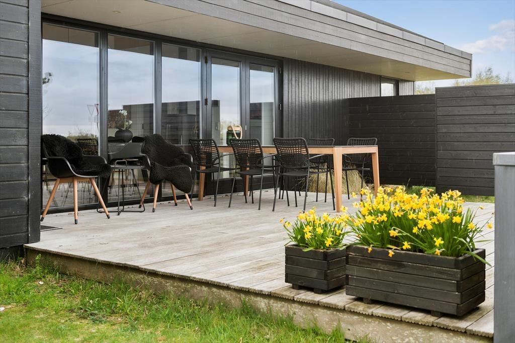 Das Ferienhaus befindet sich auf einem großen Naturgrundstück, umgeben von offenen Feldern, die sich bis zur Fanø Bucht und dem Wattenmeer erstrecken. Auf der nordöstlich gelegenen Terrasse wird man mit einer herrlichen Aussicht belohnt. Die südwestlich gelegene Terrasse bietet eine abgelegenere Umgebung, geschützt durch einen höheren Zaun, ideal zum Entspannen auf Sonnenliegen. Zusätzlich besteht die Möglichkeit, Kaffee am Gartentisch auf dem Rasen südlich des Hauses zu genießen, und so unabhängig von der Windrichtung und Tageszeit den perfekten Ort zum Verweilen zu finden.