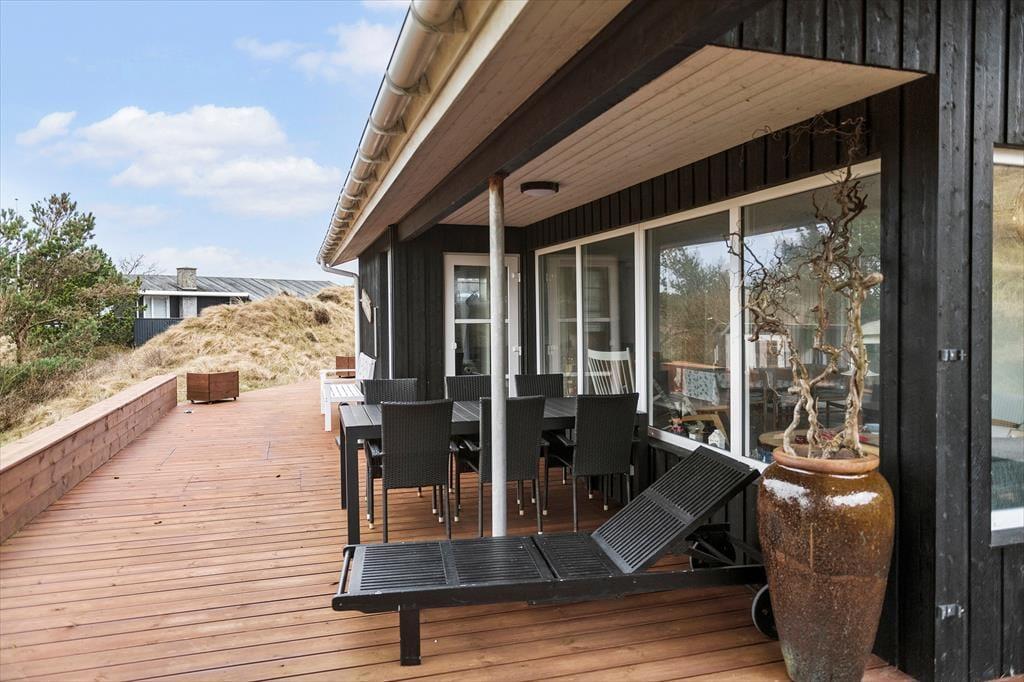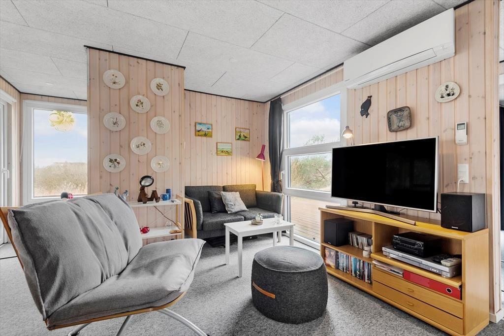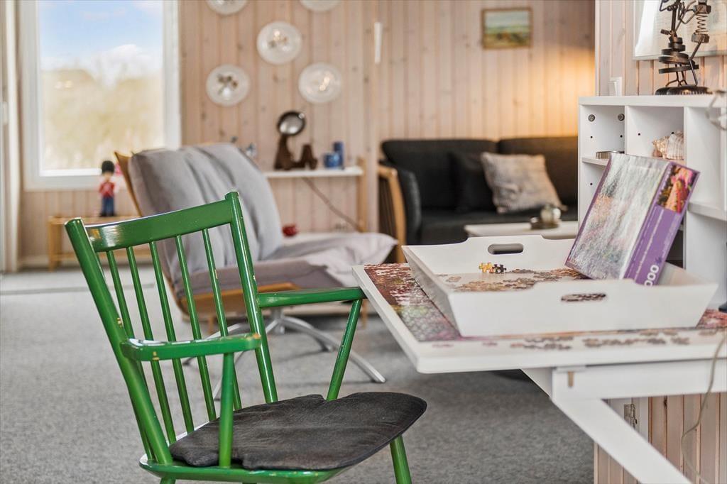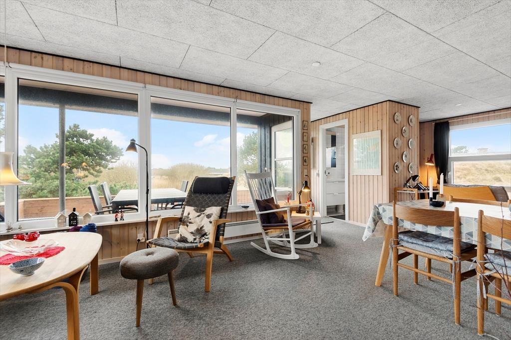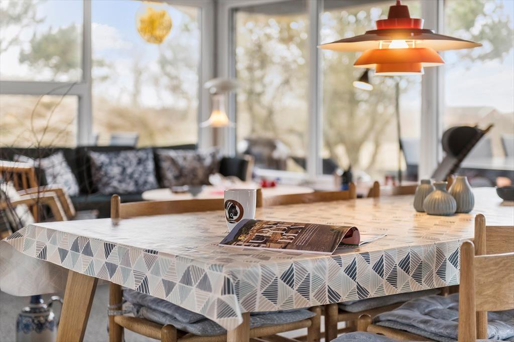 Das Ferienhaus hat eine schöne Lage in den Dünen, so dass du direkt auf die sanften Gräser und die gewundenen Kiefern blicken kannst, aber auch über die Umgebung hinaus. Besonders im Wohnzimmer sorgen die großen Fenster dafür, dass Licht und Natur hereinströmen, und auch wenn du drinnen entspannst, wirst du daran erinnert, dass du weit weg vom Alltag bist. Sowohl die Sofaecke als auch der Esstisch sind gemütliche Treffpunkte, und wenn ihr in der Familie gerne kocht, könnt ihr problemlos mehrere Personen in der offenen Küche unterbringen, um knackigen Salat zu schneiden oder duftende Eintöpfe zuzubereiten.
