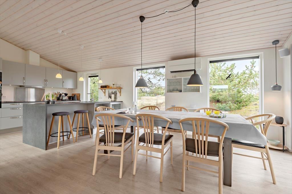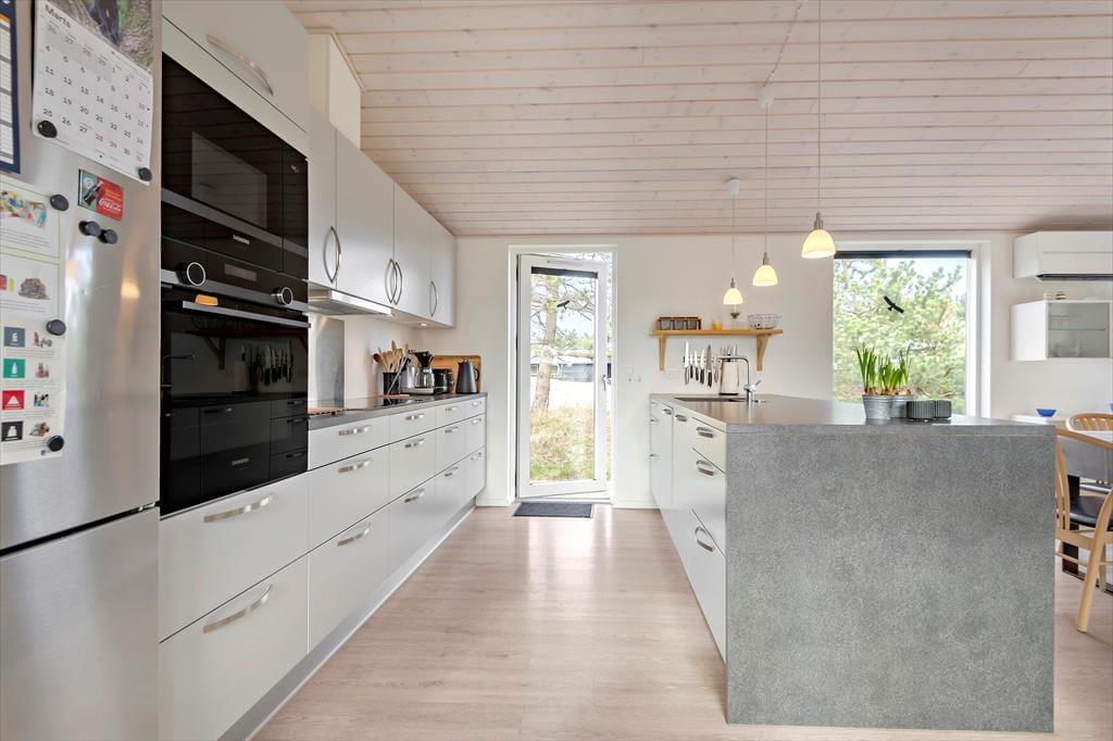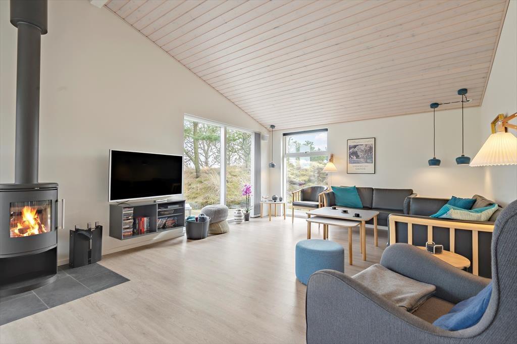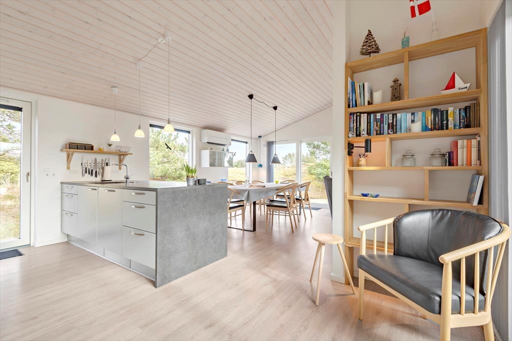 Der Grundriss des Ferienhauses ist durchdacht, sodass sowohl der Schlaf, das morgendliche Bad und die geselligen Momente in schöner Umgebung stattfinden können. Am einen Ende des Hauses befinden sich drei gute Schlafzimmer und zwei schöne Badezimmer – das bedeutet, dass du die Möglichkeit hast, dich zurückzuziehen und zu schlafen, auch wenn die anderen Lust haben, lange aufzubleiben, um Musik zu hören und Spiele im Wohnbereich zu spielen. Wenn ihr alle zusammen hier Zeit verbringt, habt ihr viel Platz sowohl zum Entspannen auf dem Sofa als auch für köstliche Mahlzeiten sowie zum Kochen in der offenen und gut ausgestatteten Küche. Es gibt einen Kaminofen im hellen und hoch aufragenden Raum, und die großen Fenster sorgen dafür, dass sowohl die Sonne als auch die Natur vollständig hereingeladen werden.