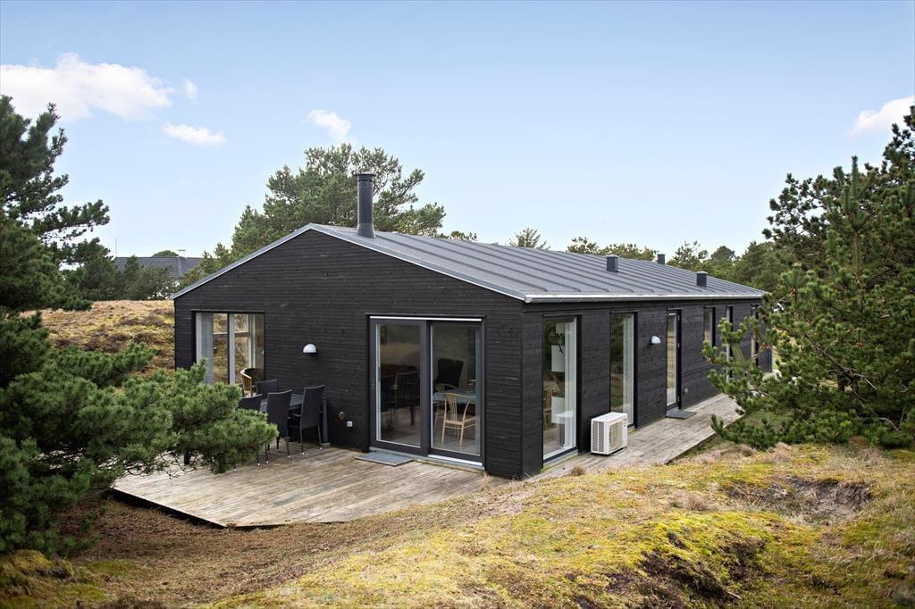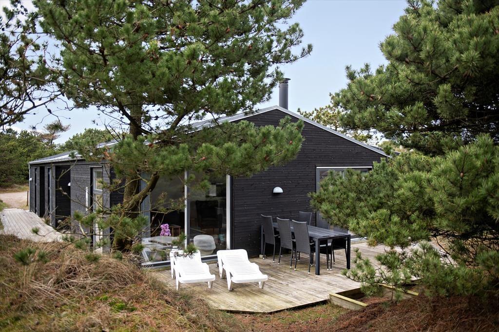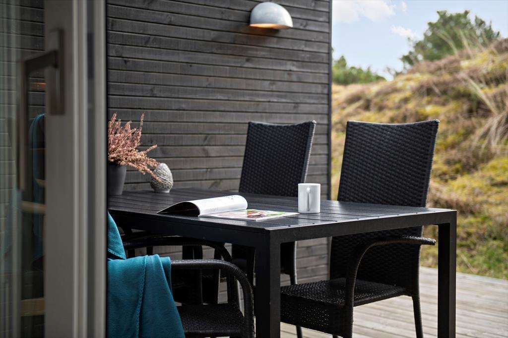 Das Naturgrundstück ist nicht nur von innen aus dem Haus schön anzusehen, sondern du kannst auch nach draußen gehen, um die Aussicht zu genießen und gleichzeitig die anderen Sinne zu wecken. Hier kannst du die Wärme der Sonne spüren und dem Vogelgezwitscher lauschen, während du es dir in einem Gartenstuhl bequem machst – und wenn du sogar daran gedacht hast, einen guten Kaffee oder Tee mit nach draußen zu nehmen, ist es schwer, nach mehr zu verlangen. Die offene Holzterrasse erstreckt sich über drei Seiten des Hauses, und in einer Nische befindet sich ein überdachter Terrassenbereich, der gut vor dem Wind geschützt ist. Vielleicht ist dies der Ort, an dem du und deine Lieben den Tag mit Grillen und gemütlichem Beisammensein beenden, während die Sonne untergeht?