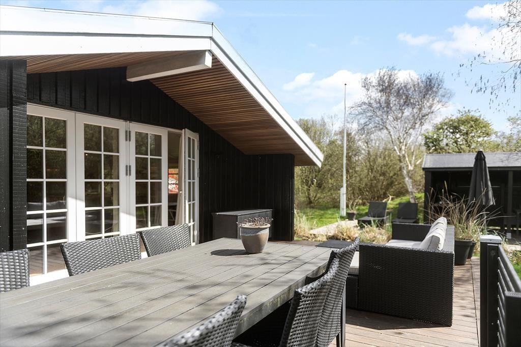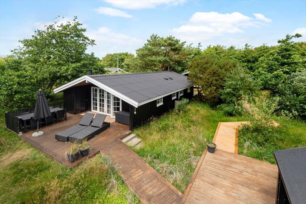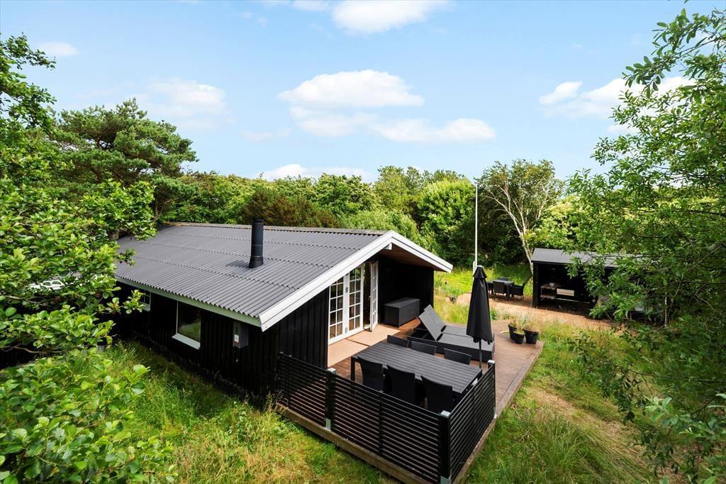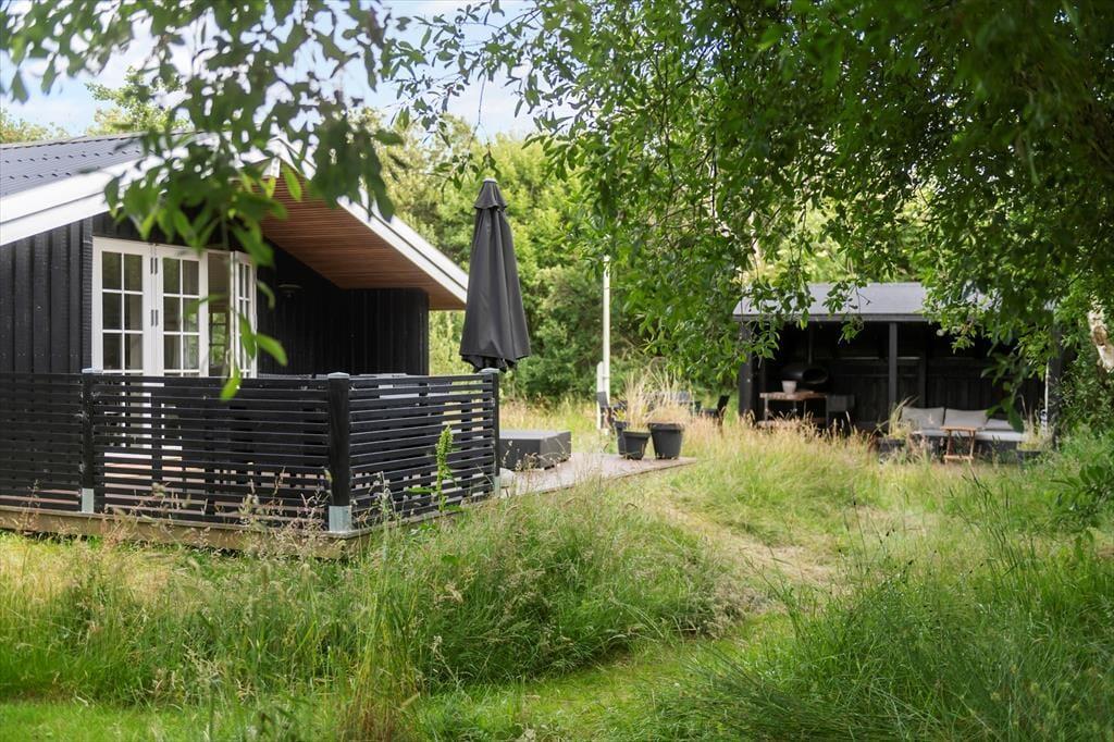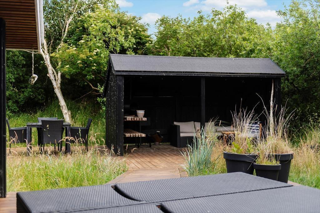Egal, ob du alleine, mit deinem Liebsten oder deiner Familie im Urlaub bist, es ist herrlich, draußen auf dem 2000 m² großen Naturgrundstück zu sein. Die Bäume schirmen die Aufenthaltsbereiche ab und bieten dir etwas Schönes zum Anschauen, während du am Gartentisch Kaffee trinkst oder dich auf einem der Sonnenliegen entspannst. Die überdachte Terrasse mit Loungemöbeln ist ein stimmungsvoller Ort zum Sitzen, wenn die Dunkelheit hereinbricht und die Vögel ihr Abendlied singen. Auf der nordöstlichen Seite des Hauses befindet sich auch eine Bank, und für die Kinder hängt eine Sinneswippe in einem der Kiefern.